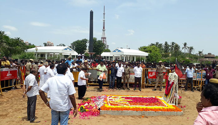 நேற்று அவரது பூத உடல் மெரினாவில் வைத்து நல்லடக்கம் செய்யப்பட்டது. 94 வயதான இந்த மூத்த அரசியல் தலைவருக்கு, திரைத்துறை பிரபலத்திற்கு, அஞ்சலி செலுத்த நாடெங்கிலும் இருந்து பல்வேறு அரசியல் தலைவர்களும், திரைத்துறை பிரபலங்களும் நேரில் வந்து அஞ்சலி செலுத்தினர்.