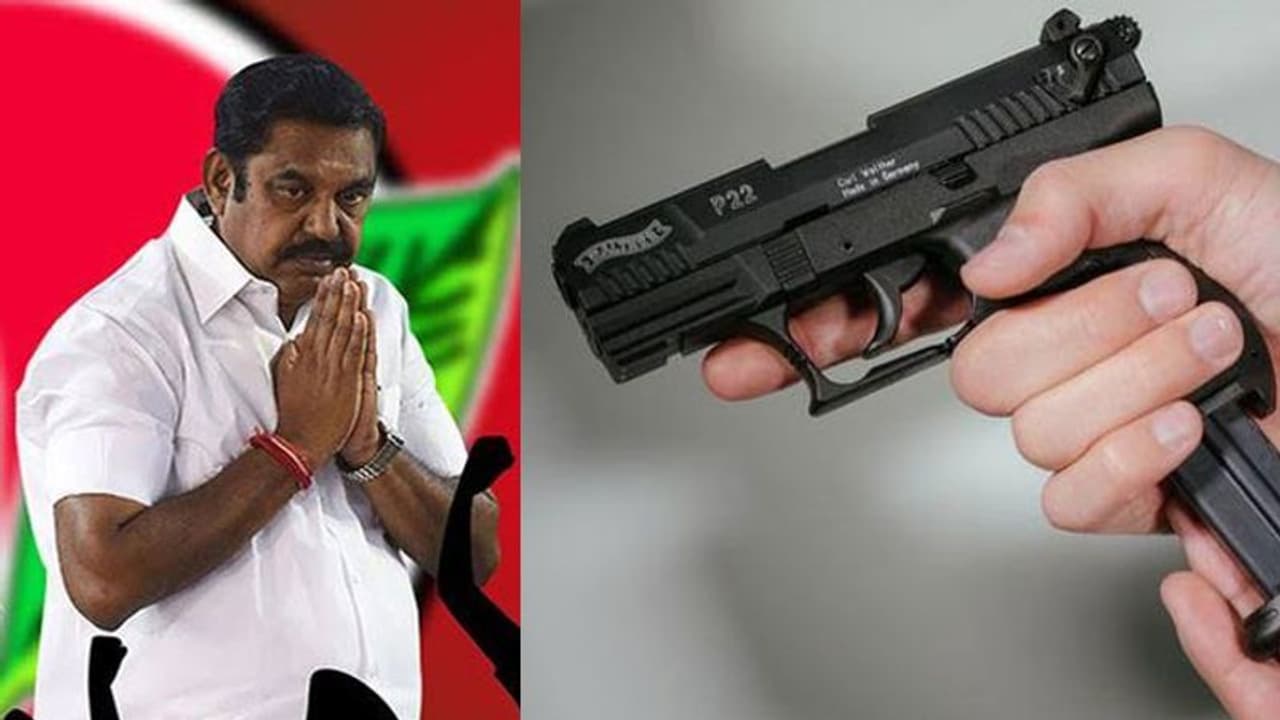 முதல்வர் எடப்பாடி பழனிச்சாமி வழியனுப்ப, சென்னை விமான நிலையத்திற்கு துப்பாக்கியுடன் வந்த அதிமுக நிர்வாகியிடம் போலீசார் விசாரணை நடத்தி வருகின்றனர்.