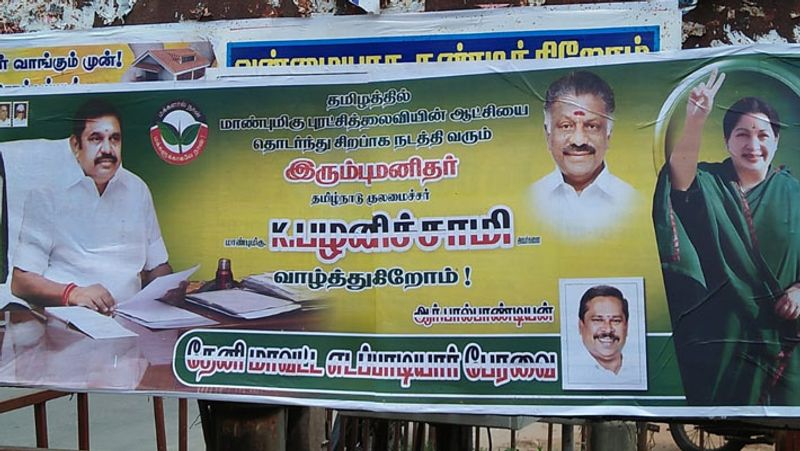 மேலும் போஸ்டரில் இடம்பெற்ற தேனி மாவட்ட எடப்பாடி பேரவை என்ற வாக்கியம் மற்றும் போஸ்டர் அச்சிட்ட பால்பாண்டியன் படத்தின் மீதும் சாணியை பூசி சென்றுள்ளனர். இதனால் இன்று காலை அப்பகுதியில் பெரும் பரபரப்புடன் காணப்பட்டது.