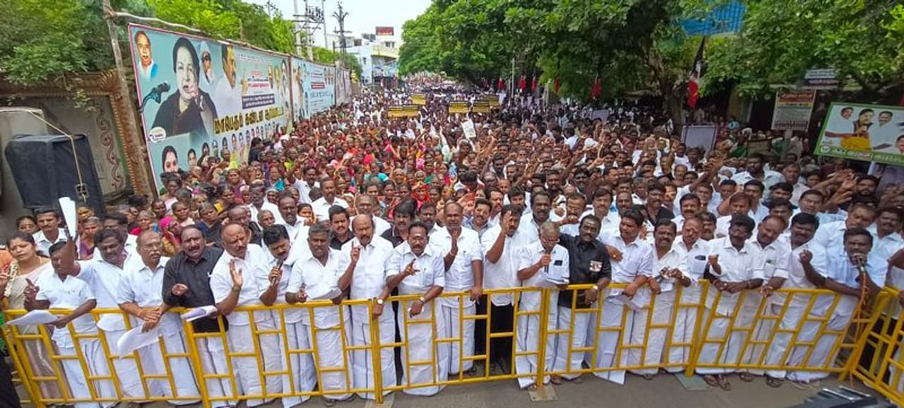 செந்தில் பாலாஜியை அமைச்சர் பதவியில் இருந்து நீக்க கோரியும், திமுக அரசை கண்டித்தும் அதிமுக சார்பாக தமிழகம் முழுவதும் ஆர்பாட்டம் நடைபெற்றது. மதுரை ஆரப்பாளையம் கிராஸ் ரோடு பகுதியில் முன்னாள் அமைச்சர்களான செல்லூர் ராஜூ, ஆர்.பி.உதயகுமார், சட்டமன்ற உறுப்பினர்கள் ராஜன் செல்லப்பா ஆகியோர் தலைமையில் நடைபெற்ற ஆர்பாட்டத்தில் கலந்து கொண்ட அதிமுகவினர் திமுக அரசுக்கு எதிராக முழக்கங்களை எழுப்பினர். இதனை தொடர்ந்து போராட்டதில் பேசிய சட்டமன்ற உறுப்பினர் ராஜன் செல்லப்பா, 12 கோடியில் கட்ட கலைஞர் கோட்டத்தில் என்ன இருக்கிறது.கருணாநிதி கோட்டத்தை அவரது குடும்பத்தினரை தவிர வேறு யாரும் போய் பார்க்க மாட்டார்கள். முதல்வர் ஸ்டாலின் எல்லாவற்றுக்குமே கருணாநிதி பெயரை வைத்து வைத்து பார்க்கிறார்.