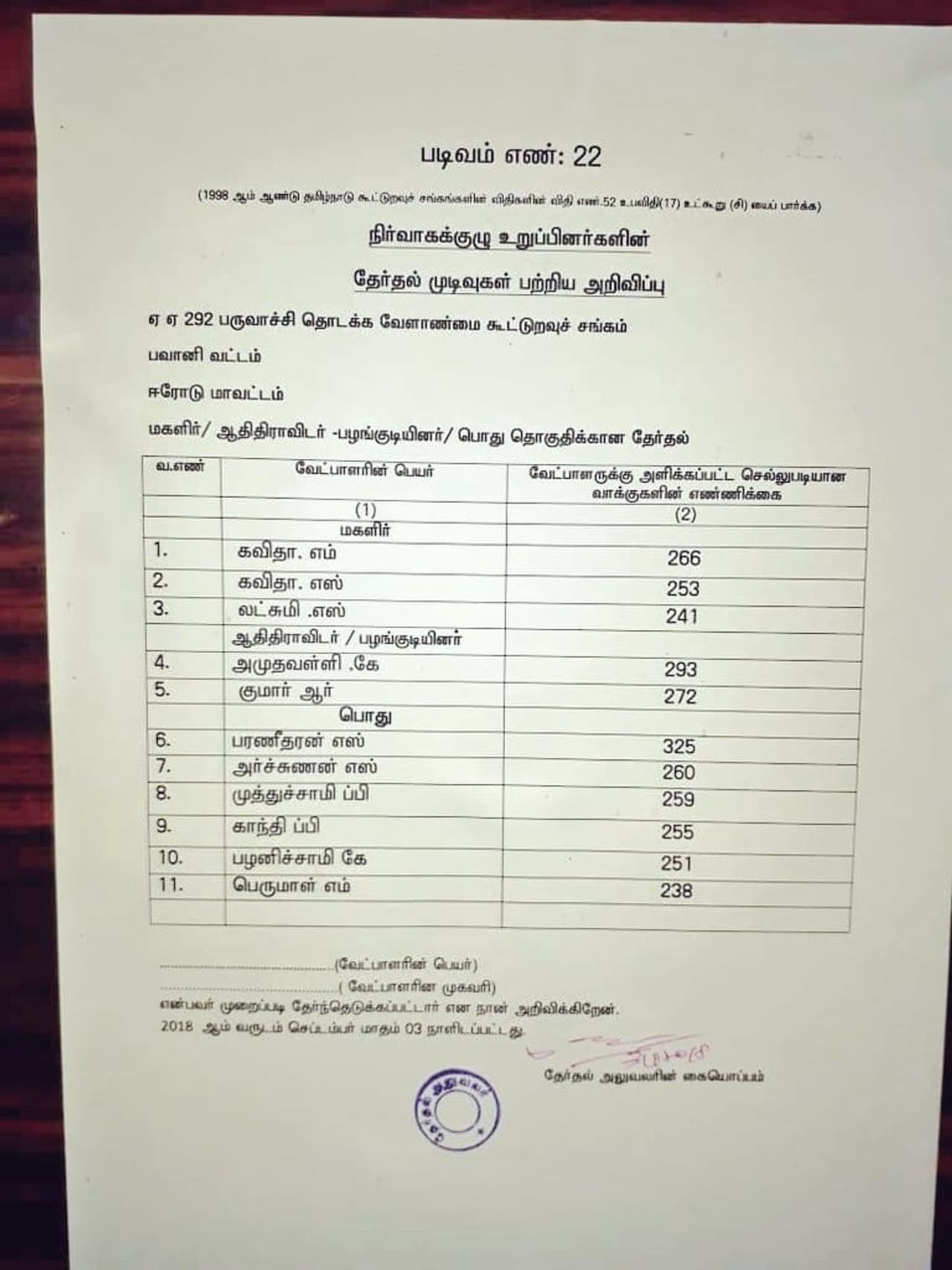 அந்தியூர் அருகே பருவச்சி தொடக்க வேளாண்மை கூட்டுறவு சங்கத் தேர்தலில் அ.தி.மு.க., மட்டுமின்றி, அம்மா மக்கள் முன்னேற்ற கழகமும், தேர்தலில் தீவிரம் காட்டியது. தேர்தல் முடிந்து வாக்கு பதிவு முடிந்து ரிசல்ட் வெளியானதில் 11 பேர் வெற்றி பெற்றுள்ளனர்.