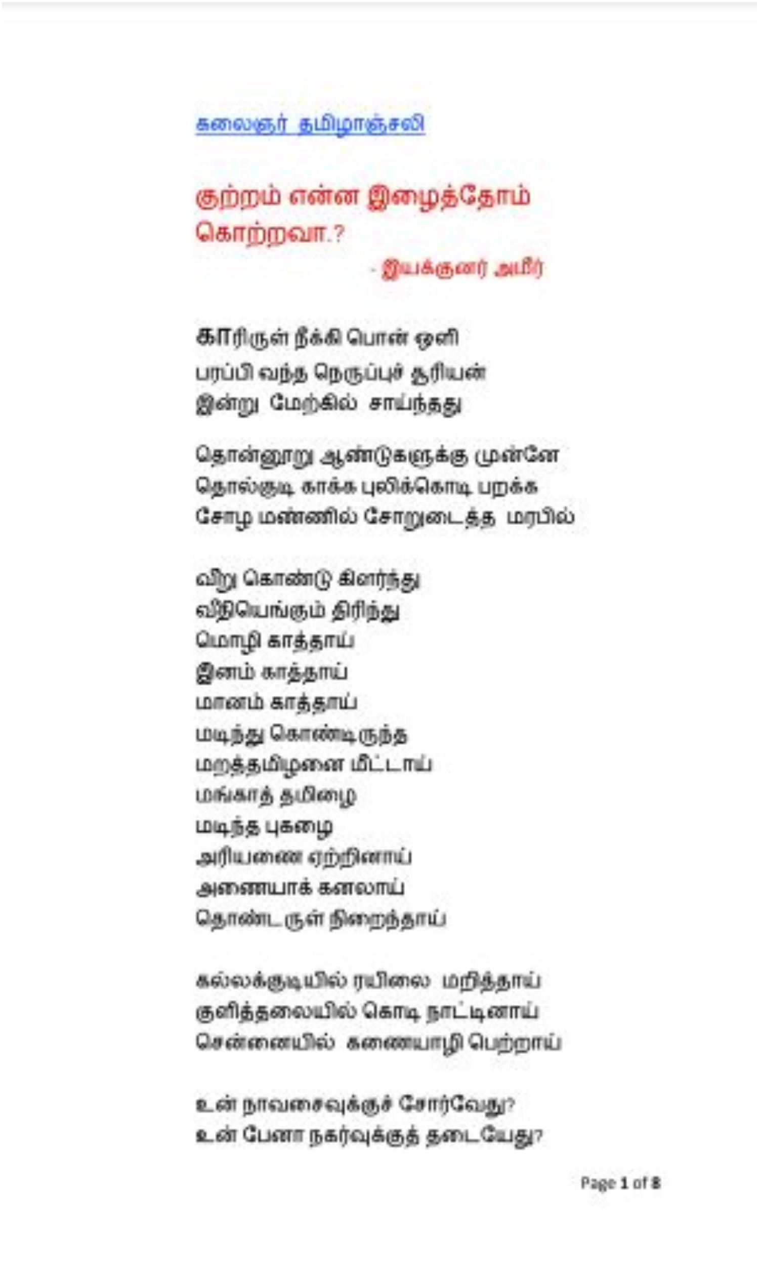 இந்நிலையில் இயக்குனர் அமீர் கலைஞர் கருணாநிதி பற்றி எழுதப்பட்ட உருக்கமான கவிதையை வெளியிட்டுள்ளார்.