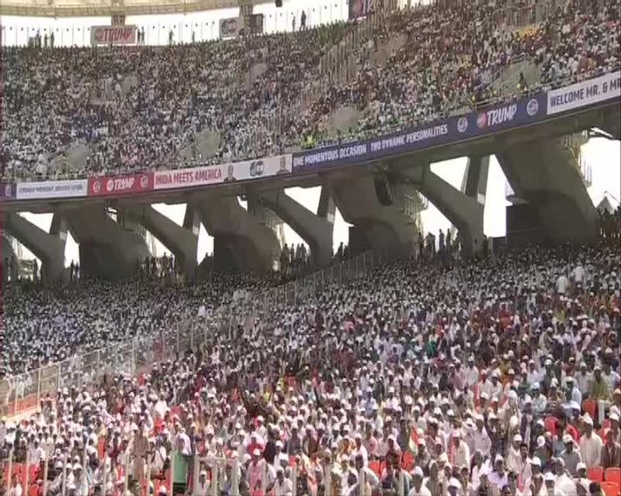 பின்னர் அங்கிருந்து சபர்மதி ஆசிரமத்தற்கு சென்ற அவர், மகாத்மா காந்தியின் வாழ்க்கை முறைகளையும் அவர்கள் அவர் போதித்த நெறிகளையும் பார்வையிட்டு வியந்தார், பின்னர் அங்கிருந்து புதிதாக கட்டப்பட்டுள்ள சர்தார் வல்லபாய் பட்டேல் விளையாட்டு அரங்கத்திற்கு வந்த அவர், அங்கு திரண்டிருந்த சுமார் 1.25 லட்சம் மக்கள் முன்னிலையில் உரையாற்றினார் , முன்னதாக உரையாற்றிய மோடி அமெரிக்க அதிபர் ட்ரம்ப் இந்தியாவின் உற்ற நண்பர் என்றார் , உலகின் மதிப்புமிக்க தலைவரான ட்ரம்பை இந்தியா வரவேற்கிறது , ட்ரம்பிற்கு நமஸ்தே நமஸ்தே என பிரதமர் மோடி வரவேற்றார் , பின்னர் உரையாற்ற வந்த அதிபர் ட்ரம்ப், பதிலுக்கு நமஸ்தே என கூறி இந்தியர்களுக்கு வணக்கம் தெரிவித்தார்.