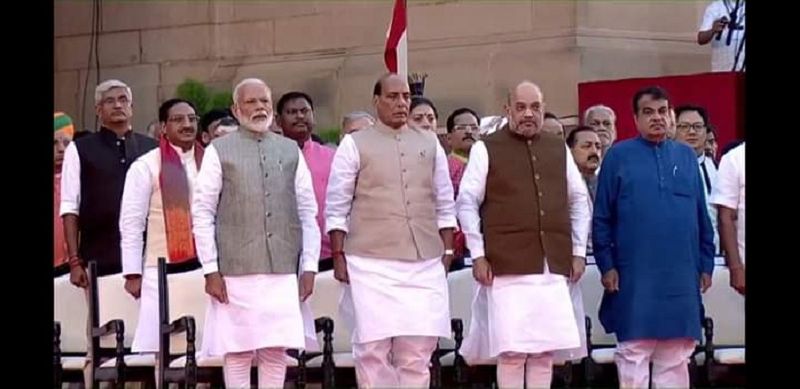 மோடியை அடுத்து மத்திய அமைச்சராக இருந்த ராஜ்நாத் சிங் அமைச்சராக பதவியேற்றார். அதனையடுத்து பாஜக தலைவர் அமித்ஷா மத்திய அமைச்சராக பதவியேற்றார்.