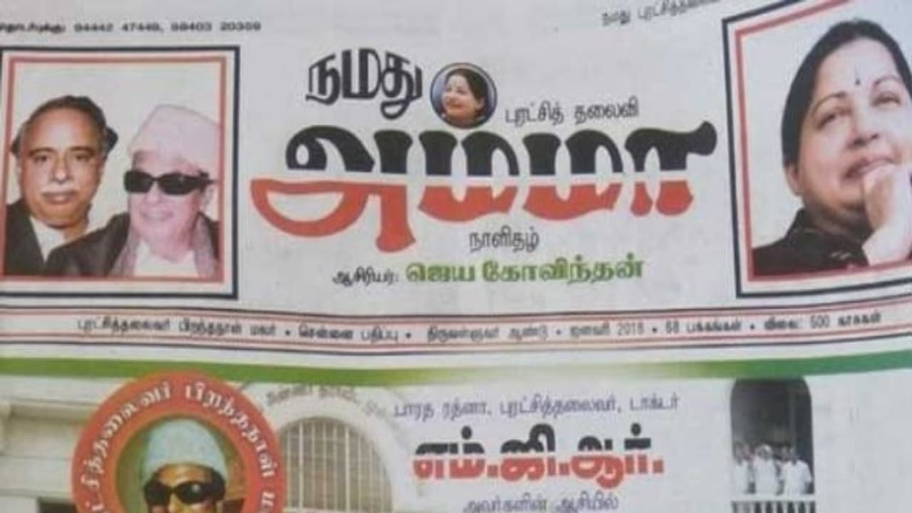 அதிமுகவின் அதிகாரப்பூர்வ நாளேடான நமது அம்மாவில் அதிமுக-பாஜக இரட்டைக்குழல் துப்பாக்கி போல் இயங்குகிறது என கட்டுரை எழுதிய 2 உதவி ஆசிரியர்கள் பணி நீக்கம் செய்யப்பட்டுள்ளனர்.
