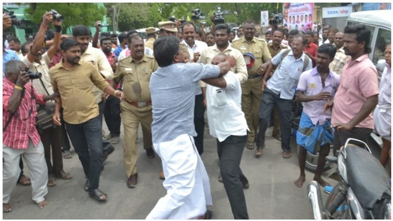 பாளையங்கோட்டையில் அழகுமுத்து கோன் பிறந்தநாளையொட்டி அவரது சிலைக்கு பல்வேறு அரசியல் கட்சியினர் மாலை அணிவித்து மரியாதை செலுத்தினர். அப்போது அதிமுகவினரும், அமமுகவினரும் மாலை அணிவிக்கும்போது இருதரப்பினருக்கும் மோதல் ஏற்பட்டது. அப்போது ஒருவரையொருவர் தாக்கிக்கொண்டனர்.