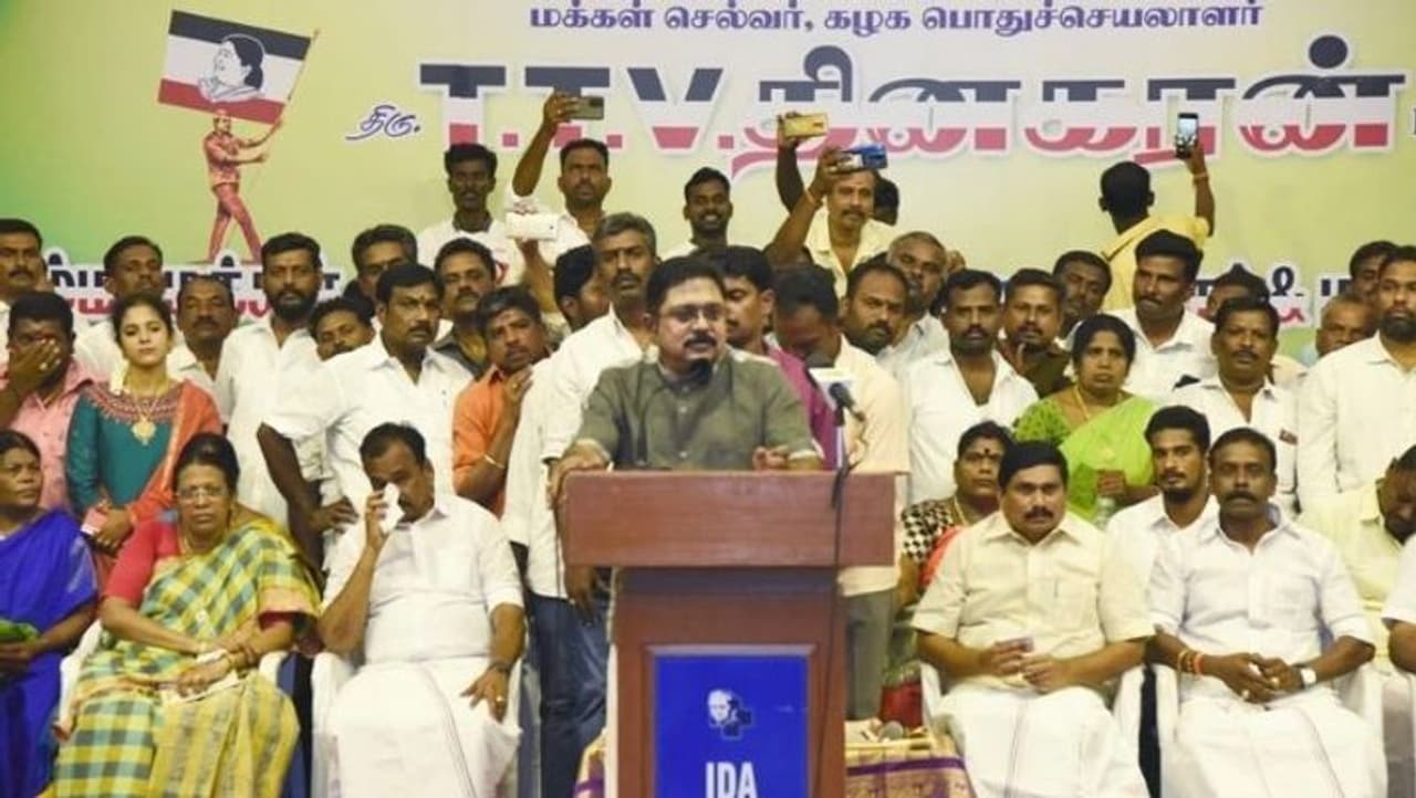 மதுரையில் இன்று அமமுக கட்சியின் சார்பில் மதுரை புறநகர் வடக்கு, தெற்கு மாவட்ட நிர்வாகிகள் கூட்டம் நடைபெற்றது. இந்த கூட்டத்தில் சுமார் 1000க்கும் மேற்பட்ட நிர்வாகிகள் கலந்து கொண்டனர். இதில் கலந்து கொண்டு பேசிய டிடிவி தினகரன், ‘கன்னியாகுமரியிலிருந்து திருத்தணி, ஒசூர் வரைக்கும் 234 தொகுதியிலும் அமமுகவுக்கு கட்டமைப்பு உருவாக்கியுள்ளோம். எம்ஜிஆர், ஜெயலலிதா வகித்த தலைமைப்பதவியை ஏலம்போட்டு நிர்வாகிகளுக்கு பணம் கொடுத்து விலைக்கு வாங்கியுள்ளனர்.