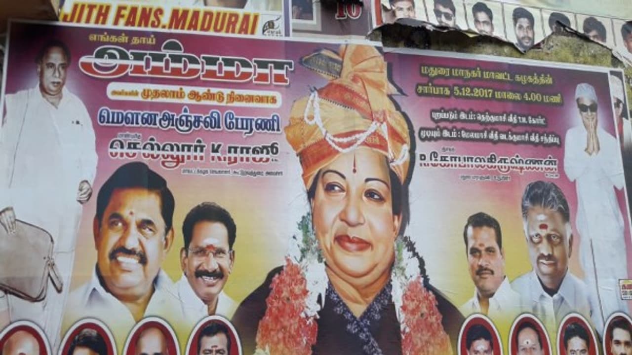 இது தொடர்பாக மதுரையெங்கும் ஒட்டப்பட்டிருக்கும் போஸ்டரில் அண்ணா, எம்.ஜி.ஆர். ஜெயலலிதா படங்களுடன் பெரிய சைஸில் எடப்பாடியாரும், பன்னீரும் அவர்களை விட சின்ன சைஸில் செல்லூர் ராஜூவும் சிரிக்கின்றனர். தங்கள் தலைவி இறந்த நினைவு நாளில் அஞ்சலி செலுத்தும் நிகழ்வுக்கு சிரித்தபடி போஸ்டரடித்த ஒரே கட்சி இதுவாகத்தான் இருக்கும்.