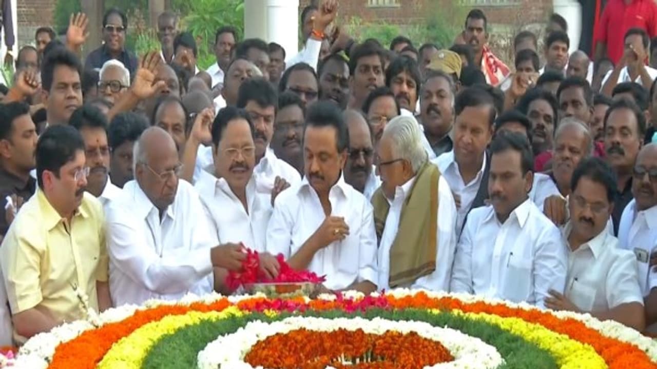 சென்னை வள்ளுவர்கோட்டத்தில் உள்ள அண்ணா சிலைக்கு திமுக பொதுச்செயலாளர் அன்பழகன், செயல் தலைவர் ஸ்டாலின் ஆகியோர் மரியாதை செலுத்தினர். சிலைக்கு கீழே இருந்த அண்ணாவின் படத்திற்கு மாலை அணிவித்து மலர்தூவி மரியாதை செலுத்தினர்.