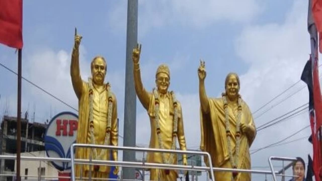 Anna MGR and Jayalalithaa Statue st Coimbatore