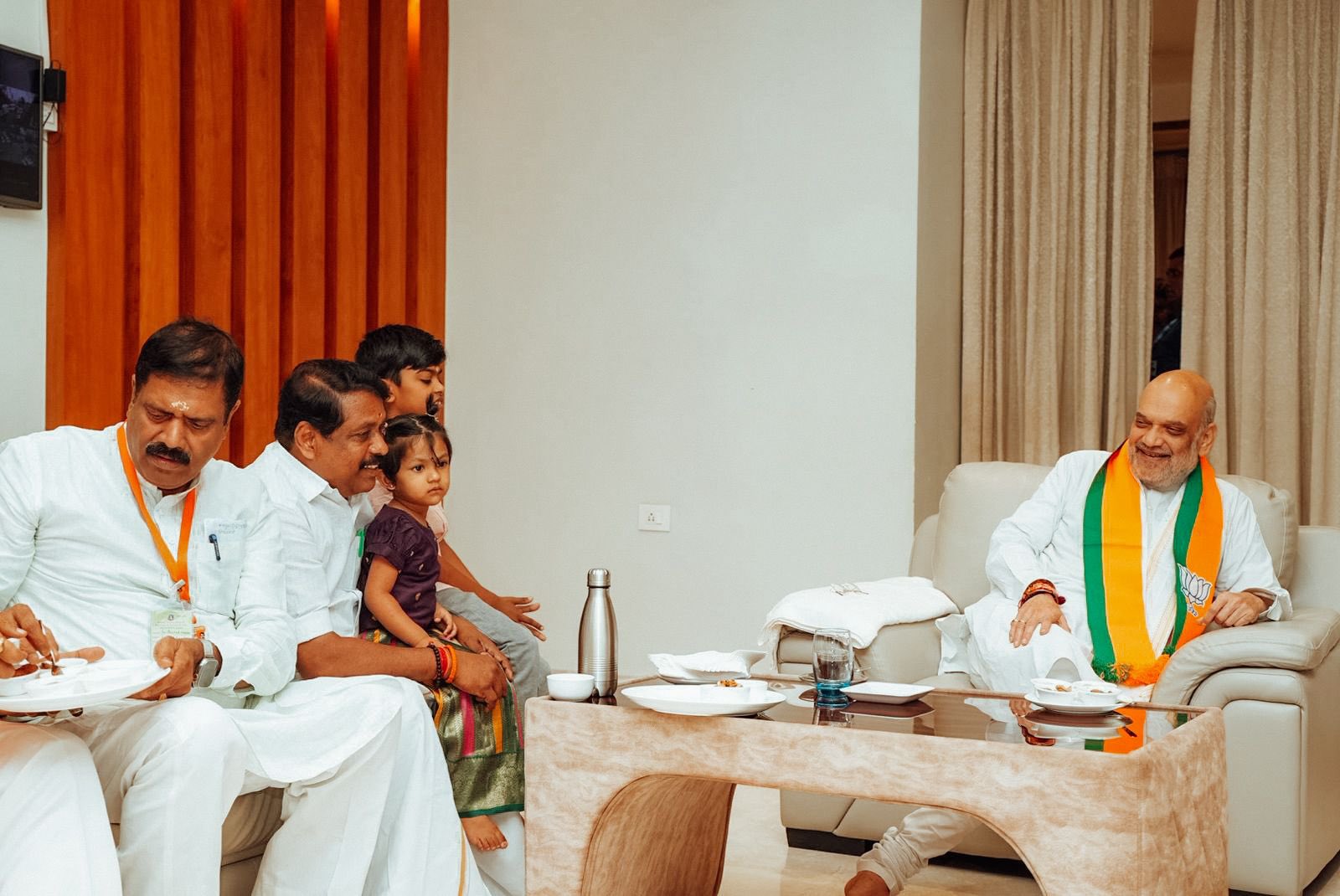 நயினாரின் வீட்டில் அமித் ஷாவுக்காக வகை வகையான பதார்த்தங்கள் எல்லாம் தயார் செய்யப்பட்டு இருந்தது. ஆனால். தேனீரை மட்டும் அருந்திவிட்டு மற்றவற்றை தவிர்த்து விட்டார் அமித் ஷா. தேனீர் விருந்தின்போது தமிழைசை சவுந்தரராஜன், வானதி ஸ்ரீனிவாசன், எல்.முருகன் உள்ளிட்டோர் எங்கே என அமித் ஷா, நயினார் நாகேந்திரனிடம் கேள்வி எழுப்பி உள்ளார். அப்போது பதற்றமடைந்த நயினார், இதோ சென்று பார்த்து விட்டு வருகிறேன் என வெளியே பார்த்துவிட்டு வந்துள்ளார்.