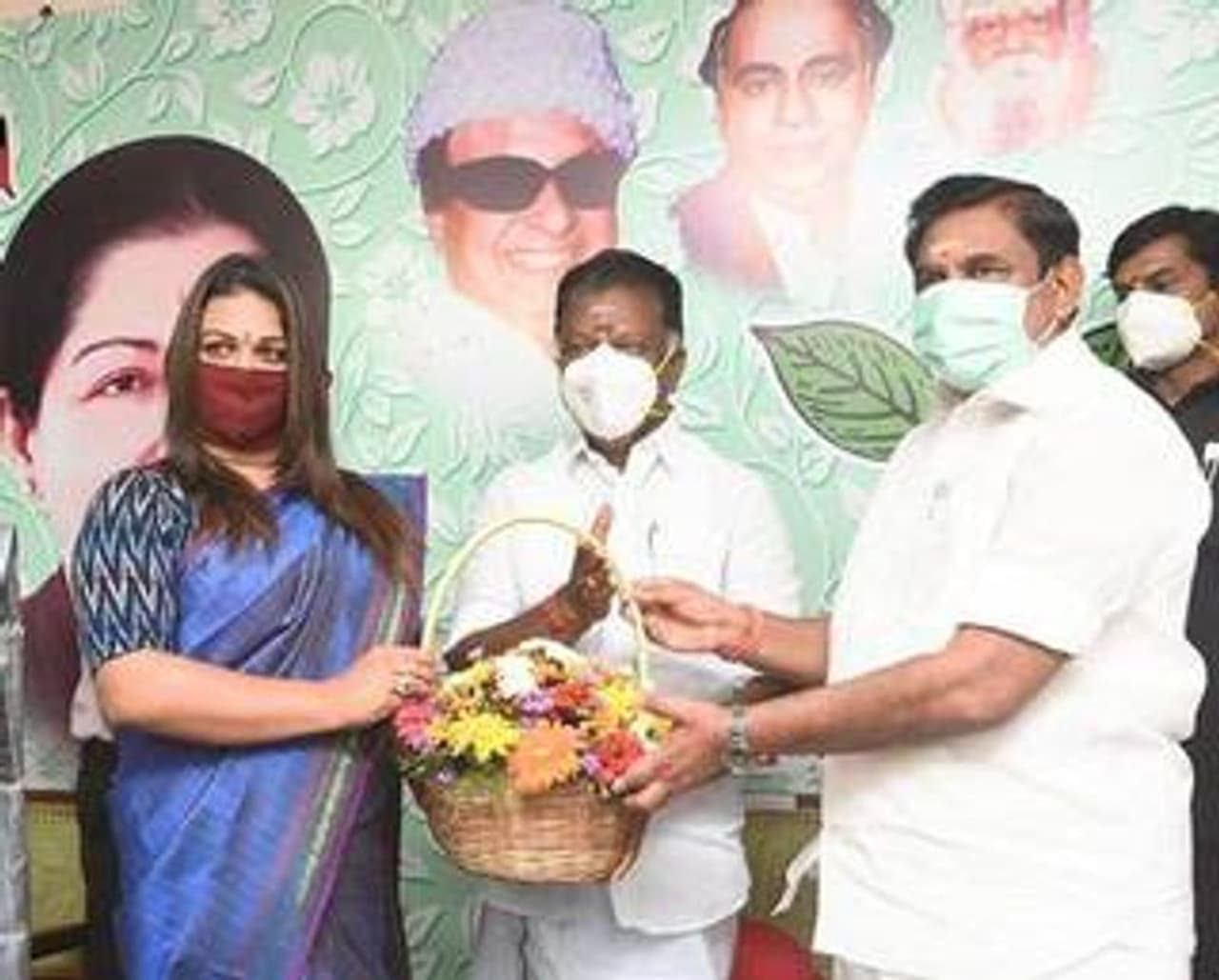 திமுக என்னும் தீய சக்தியை தோற்கடிக்கவும், ஸ்டாலினை தோற்கடிக்கவும் தான் கொளத்தூர் தொகுதியில் போட்டியிட விருப்ப மனு தாக்கல் செய்துள்ளேன். அரசியலில் சாதிக்க பாலினம் ஒரு தடை இல்லை என்றும், மக்களுக்கு நல்லது செய்வதே நோக்கமாக இருக்க வேண்டும் என்று கூறியே மறைந்த முதலமைச்சர் ஜெயலலிதா என்னை கட்சிக்குள் இணைத்தார்.