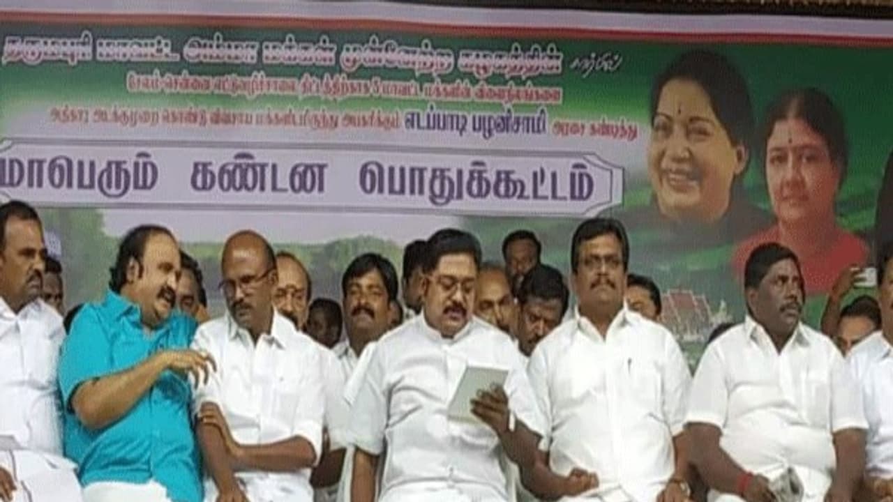 தருமபுரி மாவட்டம் அரூரில் அம்மா மக்கள் முன்னேற்ற கழகம் சார்பில் 8 வழிச்சாலைக்கு எதிர்ப்பு தெரிவிக்கும் விதமாக கண்டன பொதுக்கூட்டம் நடைபெற்றது. இந்த கூட்டத்தில் பி.பழனியப்பன், ஆர்.ஆர்.முருகன், டி.கே.ராஜேந்திரன், அவைத்தலைவர் அன்பழகன், கட்சியின் பொருளாளர் ரங்கசாமி, கட்சியின் மாநில நிர்வாகிகள் தங்க தமிழ்ச்செல்வன், செந்தில்பாலாஜி, எஸ்.கே.செல்வம், வெங்கடாசலம், புகழேந்தி மற்றும் நிர்வாகிகள் உள்ளிட்டோர் பங்கேற்றனர். இந்த கூட்டத்தை கண்ட ஆளுங்கட்சி பீதி அடைந்துள்ளதாக தகவல் வெளியாகியுள்ளது. இந்த கூட்டத்தில் பேசிய தினகரன், மக்களை பாதிக்கும் வகையில், எந்தவொரு திட்டம் வந்தாலும் தமிழகத்தில் செயல்படுத்த மாட்டோம் என்று கூறினார்.