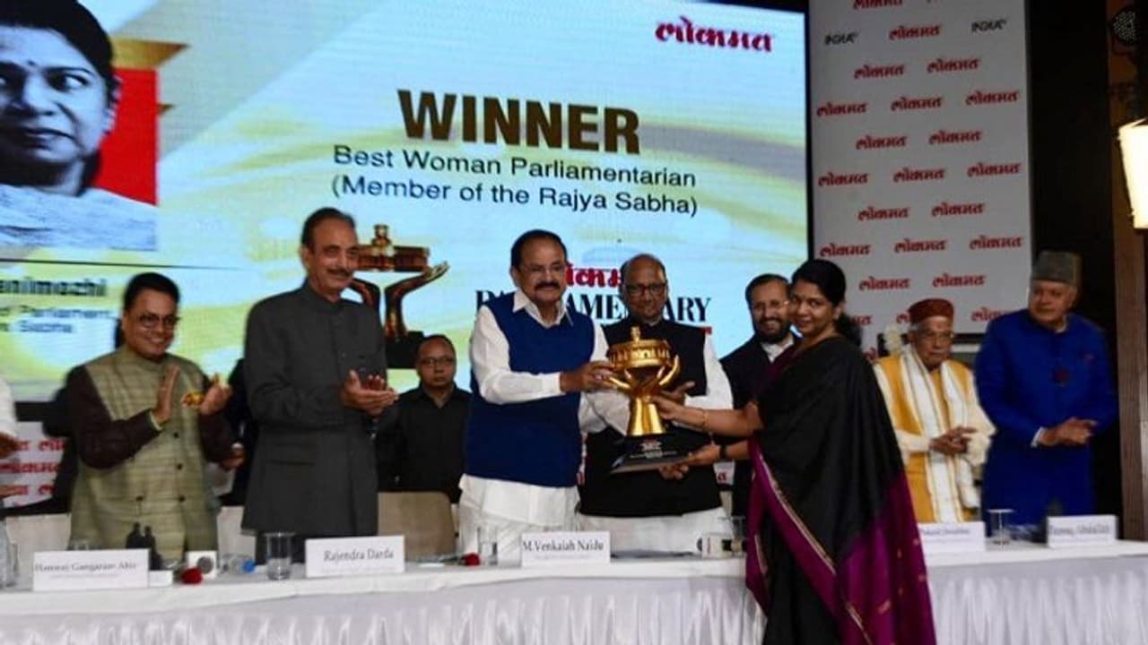 இந்நிலையில்டெல்லியில்நடைபெற்றவிழாவில்குடியரசுத் துணைத் தலைவர் வெங்கையநாயுடுகனிமொழிக்குசிறந்தநாடாளுமன்றஉறுப்பினர்விருதைவழங்கினார்.