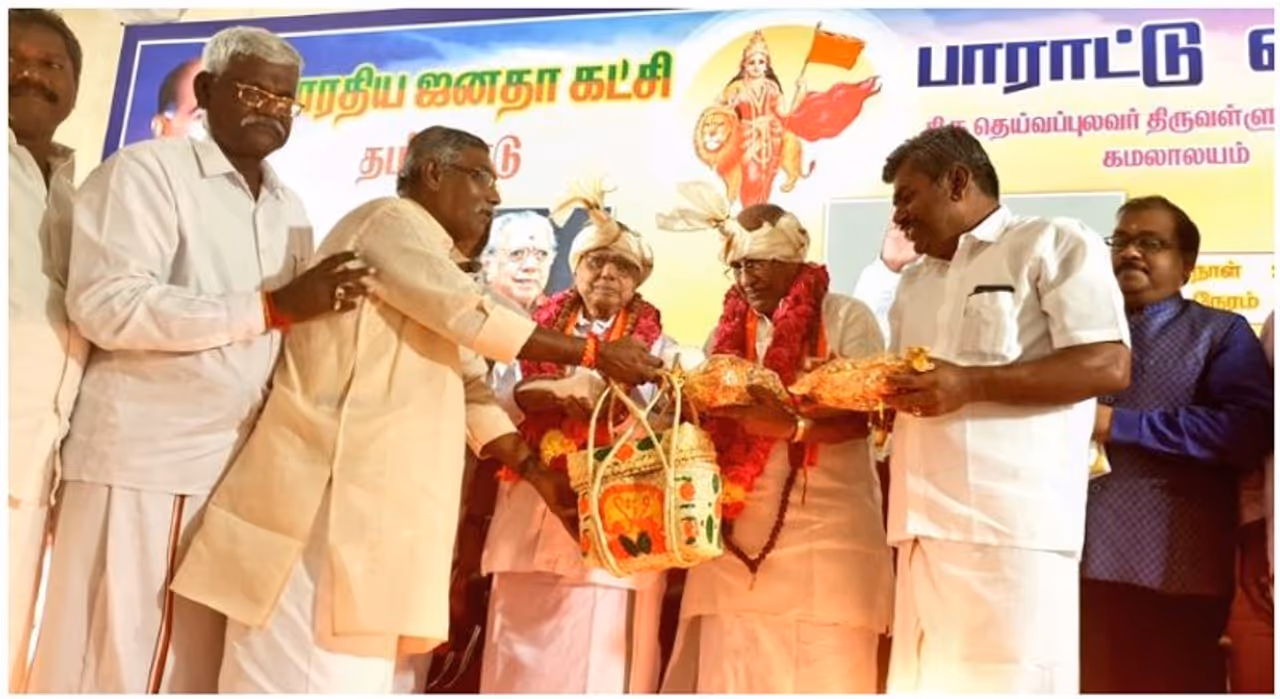 தமிழக பாஜகவின் முன்னாள் தலைவர் கே.என்.லட்சுமணன், முன்னாள் மத்திய இணையமைச்சர் ஓ.ராஜகோபால் ஆகியோருக்கு கட்சி சார்பில் பாராட்டு விழா சென்னை தி. நகரில் உள்ள கட்சி அலுவலகமான கமலாலயத்தில் நடைபெற்றது. அப்போது செய்தியாளர்களிடம் பாஜக மூத்த தலைவர் இல.கணேசன் பேசினார்.