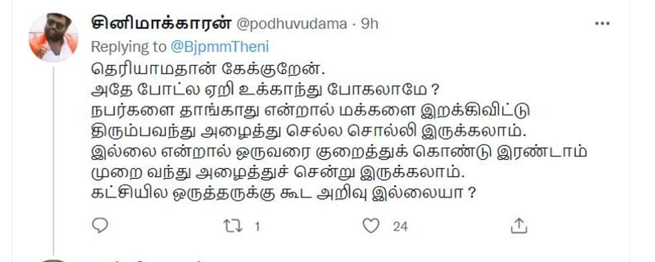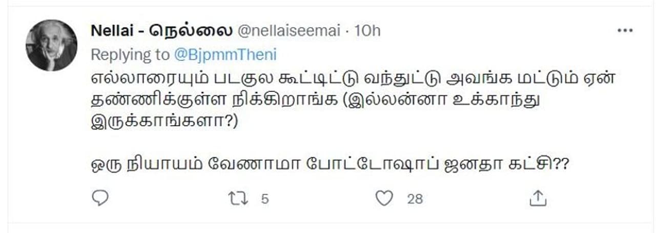 பாஜகவின் தேனி மகளிர் அணி, டுவிட்டரில் ஒரு பதிவு வெளியிடப்பட்டு உள்ளது. அதில் குறிப்பிட்டுள்ள விவரம் வருமாறு: