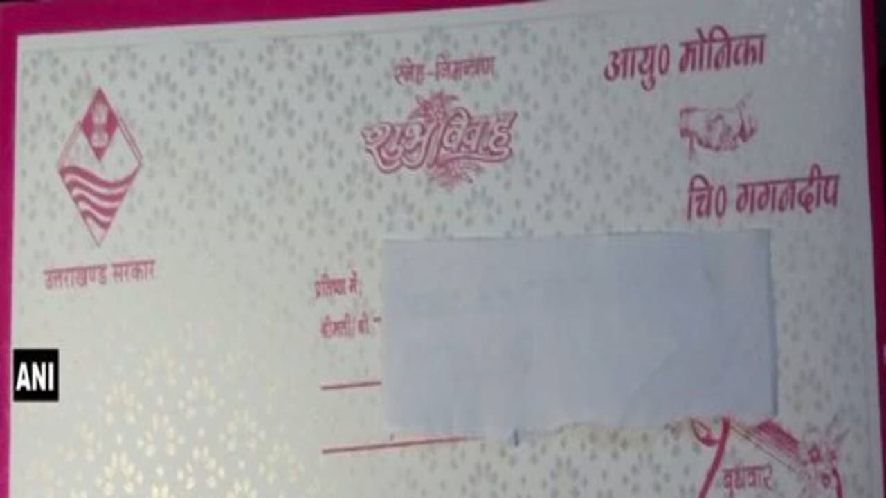 சரேஷ் ரத்தோர் தனது மகளின் திருமணத்துக்காக அச்சடித்துள்ள அழைப்பிதழின் இடது மேல் புறத்தில் உத்தரகாண்ட் மாநில அரசின் லட்சிணையை அச்சிட்டுள்ளார்.