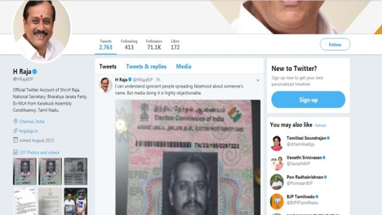 BJP National Secretary H. Raja has posted on his Twitter account to replicate the voter identity card photo of the accused as Raja Harihara Sharma
