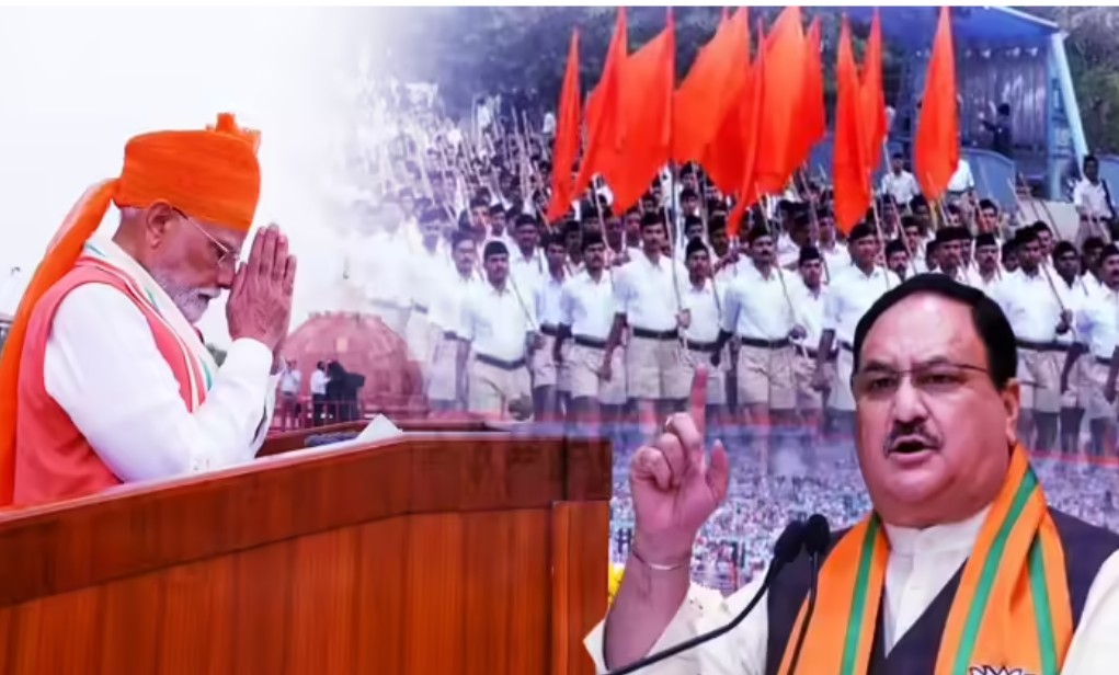 பாஜகவின் அடிப்படை ஆர்.எஸ்.எஸ் சித்தாந்தத்தை அடிப்படையாகக் கொண்டது என்பதில் எந்த சந்தேகமும் இல்லை . சங்கம் அர்ப்பணிப்புடன் ஆதரிக்கவில்லை என்றால், 2024 போன்ற பதட்டமான முடிவு வரக்கூடும். இது பாஜகவில் உள்ள ஓரங்கட்டப்பட்ட தலைவர்களையும் பாதிக்கலாம். கான்ஸ்டிடியூஷன் கிளப் தேர்தலில் பாஜக தலைவர் சஞ்சீவ் பாலியனுக்கு எதிராக ராஜீவ் பிரதாப் ரூடி செயலாளராக தேர்ந்தெடுக்கப்பட்டது ஒரு உதாரணம் மட்டுமே. ரூடிக்கு எதிர்க்கட்சி எம்.பி.க்களின் வெளிப்படையான ஆதரவு கிடைத்தது. மறுபுறம், சங்கத்தின் தன்னார்வலர்கள் களத்தில் இறங்கினால், மகாராஷ்டிரா, ஹரியானா முதல் டெல்லி வரையிலான சட்டமன்றத் தேர்தல்களில் முடிவுகள் பாஜகவுக்கு வெற்றி பெற்று தந்தது. இந்நிலையில், மோடியும், அமித் ஷாவும் இப்போது ஆர்.எஸ்.எஸ் முன் முழுமையாக சரணடைந்திருப்பது ஏன் என்பதுதான் கேள்வி. இதற்குப் பின்னால் உள்ள காரணத்தை நாம் தேடினால், அடிப்படையில் ஐந்து விஷயங்கள் தெரியும்
