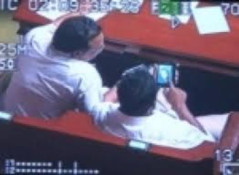 கடந்த 2012ஆம் ஆண்டு சட்டமன்றத்தின் நிகழ்ச்சிகள் நேரலையில் ஒளிபரப்பானபோது, தற்போது துணை முதல்வராக உள்ள லட்சுமணன் சவடி, சட்டமன்றத்திற்குள் தனது இருக்கையில் ஆபாசப் படம் பார்த்தது தெரியவந்தது.