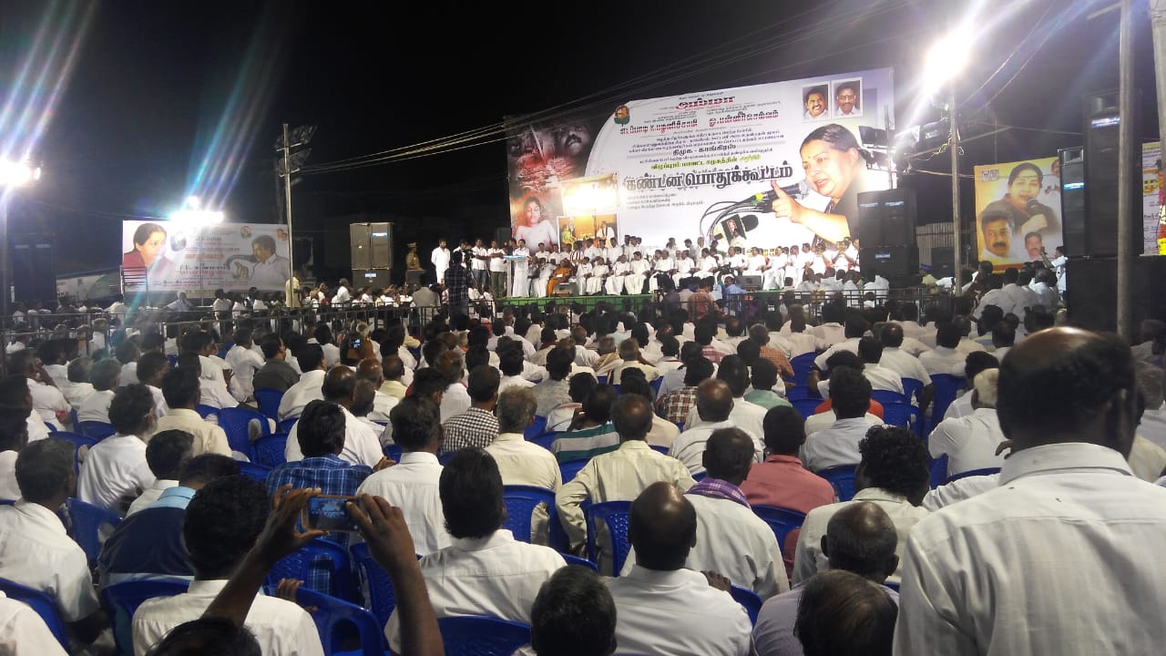 அதன்படி சேலத்தில் முதலமைச்சர் எடப்பாடி பழனிசாமி, கோவையில் அமைச்சர் எஸ்,பிவேலுமணி உள்ளிட்டோர் பங்கேற்றுப் பேசினர். விழுப்புரத்தில் நடைபெற்ற போதுக் கூட்டத்தில் பேசிய தமிழக சட்டத் துறை அமைச்சர் சி.வி.சண்முகம், இலங்கைத் தமிழர்களுக்க திமுகவும், காங்கிரஸ் கட்சியும் இணைந்து செய்த துரோகங்களை பட்டியலிட்டார்.