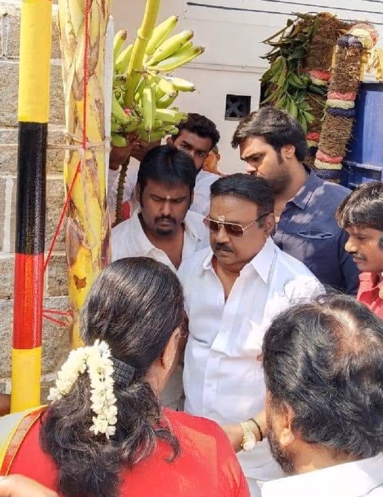 அந்த வகையில் இன்று காலையிலேயே கேப்டன் குளித்து கொடியேற்ற தயாரானார். கட்சியின் துணை பொதுச் செயலாளர்களில் ஒருவரான பார்த்தசாரதி வந்து முதலில் கேப்டனிடம் வாழ்த்து பெற்றார். பின்னர் அவருடன் ஒரு செல்ஃபியும் எடுத்துக் கொண்டார். இதனை தொடர்ந்து வீட்டுக்கு வெளியே உள்ள கம்பத்தில் கொடியேற்ற கேப்டன் வருகை தந்தார். அவரால் வேகமாக நடக்க முடியாத சூழலில் மகன் சண்முக பாண்டியன் கை தாங்கலாக அழைத்து வந்தார்.