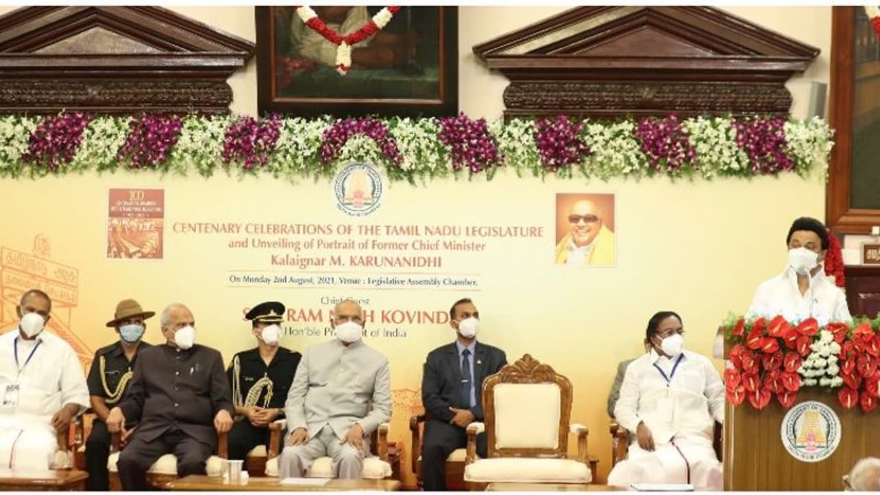 தமிழக சட்டப்பேரவையின் நூற்றாண்டு விழாவும் முன்னாள் முதல்வர் கருணாநிதியின் உருவப்படம் திறப்பு விழாவும் நேற்று நடைபெற்றது. இந்த விழாவில் குடியரசுத் தலைவர் ராம்நாத் பங்கேறு சட்டப்பேரவையில் கருணாநிதியின் உருவப் படத்தைத் திறந்து வைத்தார். இந்த நிகழ்ச்சிகள் சிறப்பாக நடந்து முடிந்ததையடுத்து சபாநாயகர் அப்பாவு, துணை சபாநாயகர் பிச்சாண்டி, திமுக கொறடா கோவை செழியன் ஆகியோர் சென்னை மெரினா கடற்கரையில் உள்ள கருணாநிதி நினைவிடத்தில் மலர் தூவி மரியாதை செலுத்தினர்.
