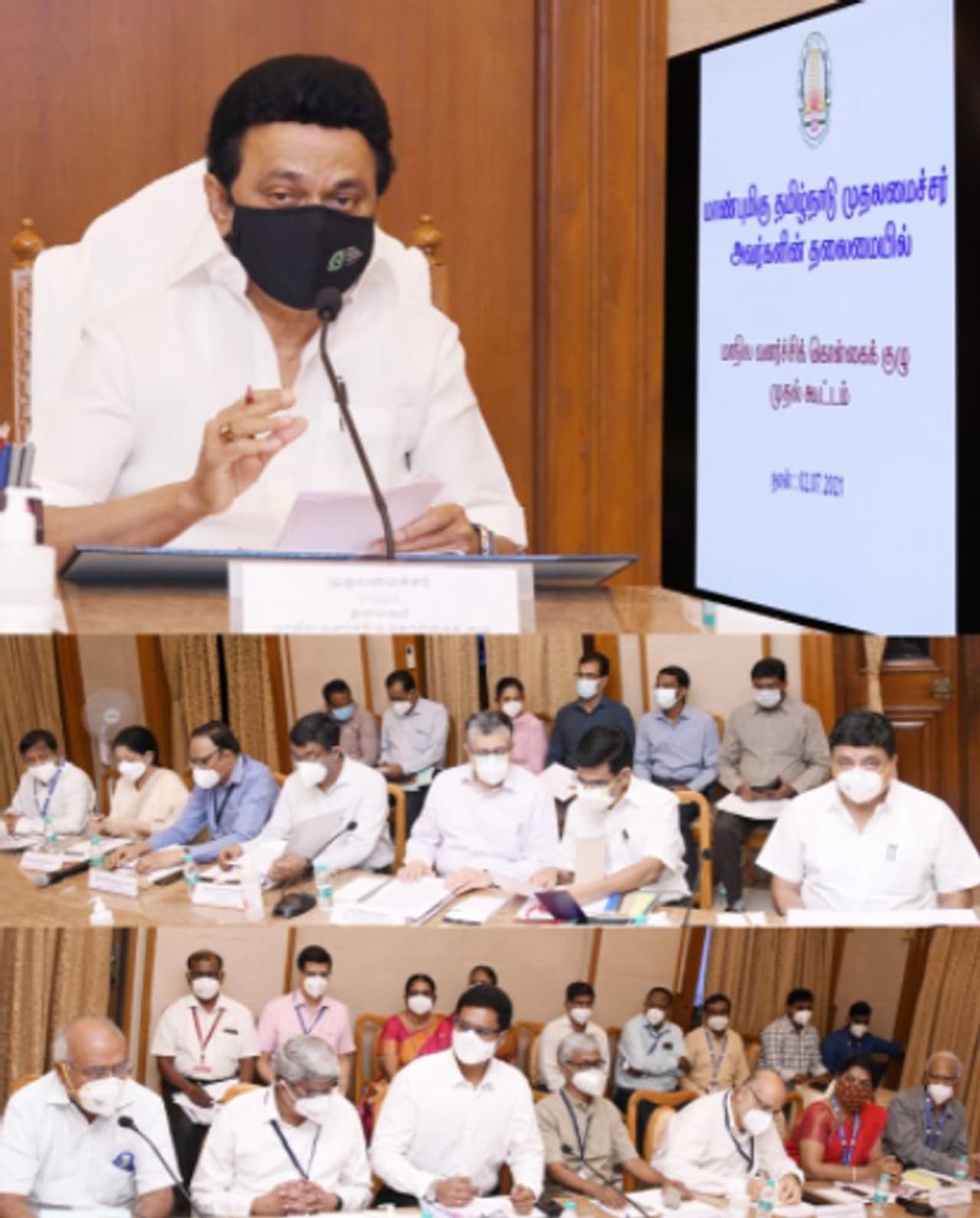 தமிழகத்தில் கொரோனா 2வது அலையின் தாக்கம் சற்றே குறைய ஆரம்பித்ததை அடுத்து, முதலமைச்சர் மு.க.ஸ்டாலின் தமிழகத்தின் வளர்ச்சிப் பணிகளில் தீவிர கவனம் செலுத்தி வருகிறார். துறை ரீதியாக மேற்கொள்ளப்பட வேண்டிய நடவடிக்கைகள், திட்டங்கள் குறித்து சம்பந்தப்பட்ட அமைச்சர்கள் மற்றும் உயர் அதிகாரிகளுடன் ஆய்வு கூட்டங்களை நடத்தி வருகிறார். இன்று தலைமைச் செயலகத்தில் முதலமைச்சர் மு.க.ஸ்டாலின் தலைமையில், மாநில வளர்ச்சிக் கொள்கைக் குழுவின் முதல் கூட்டம் நடைபெற்றது.