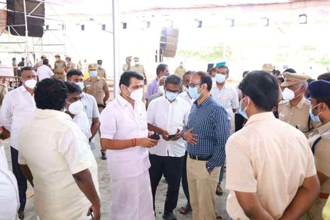 கோவை வ. உ. சிதம்பரனார் மைதானத்தில் நடைபெற்று வரும் இறுதிகட்ட பணிகளை மின்சாரம், மதுவிலக்கு மற்றும் ஆயத்தீர்வைத் துறை அமைச்சர் வி. செந்தில் பாலாஜி , ஆ. ராசா எம்.பி, வனத்துறை அமைச்சர் க. ராமச்சந்திரன் , திமுக சொத்து பாதுகாப்பு குழு உறுப்பினர் பொங்கலூர் பழனிசாமி அவர்கள், கோவை மாநகர் மேற்கு மாவட்டப் பொறுப்பாளர் பையா (எ) கிருஷ்ணன்,கோவை கிழக்கு மாவட்ட பொறுப்பாளர் திரு. S. சேனாதிபதி ஆகியோர் பார்வையிட்டனர் என்பது குறிப்பிடத்தக்கது.
