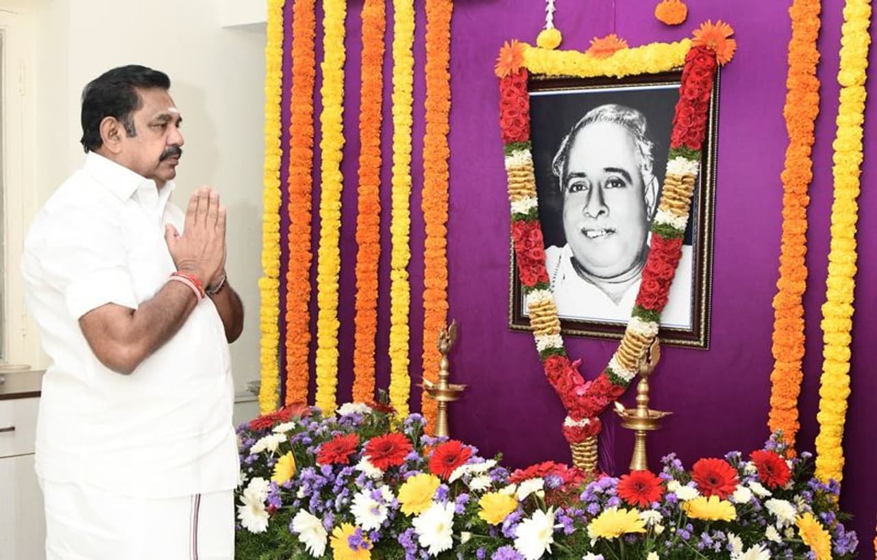இதேபோல அதிமுக இடைக்கால பொதுச்செயாலளர் எடப்பாடி பழனிசாமி, அண்ணாவின் நினைவுநாளையொட்டி அவரது பசுமை வழிச்சாலை வீட்டில் அலங்கரித்து வைக்கப்பட்ட அண்ணாவின் உருவப்படத்திற்கு மலர் தூவி அஞ்சலி செலுத்தினார். இதனையடுத்து அண்ணா நினைவிடத்திற்கு சென்ற எடப்பாடி பழனிசாமி மற்றும் அவரது முன்னாள் அமைச்சர்கள் மலர்வளையம் வைத்து அஞ்சலி செலுத்தினர். அதிமுக ஒருங்கிணைப்பாளர் ஓ.பன்னீர் செல்வமும் அண்ணாவின் உருவப்படத்திற்கு மலர் தூவி அஞ்சலி செலுத்தினார்.