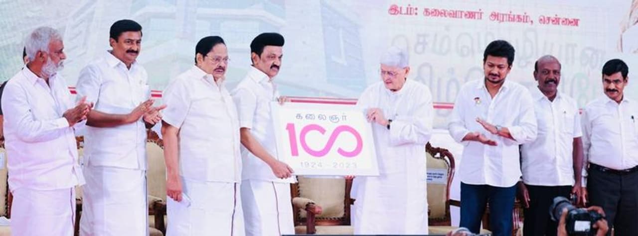 என் தலைமையிலான திராவிட மாடல் அரசை கருணாநிதிக்கும் , கருணாநிதியின் புகழுக்கும் காணிக்கையாக்குகிறேன். நவீன தமிழகத்தின் சிற்பி கருணாநிதி , அவர் தொடாத துறைகளே இல்லை , அவர் போட்மழடுத்தந்த பாதையிலே அனைத்து துறைகளும் செயல்படுகிறது. சென்னை மற்றும் சுற்றியுள்ள மாவட்டங்களில் அதிக தொழில் நிறுவனங்கள் உருவாக காரணம் கருணாநிதி. திராவிட மாடல் அரசு தொழில் புரட்சியை உருவாக்கி வருகிறது. எனது சிங்கப்பூர் , ஜப்பான் பயணத்தில் 3233 கோடி மதிப்பிலான ஒப்பந்தங்கள் கையெழுத்தாகி உள்ளன. தமிழகம் , திமுக அரசு மீது அவர்கள் நல்ல மரியாதையை வைத்துள்ளனர். இந்தியாவில் முதலீடு செய்வதாக இருந்தால் தமிழகத்தில்தான் தொழில் தொடங்குவோம் என அவர்கள் கூறியுள்ளனர்.