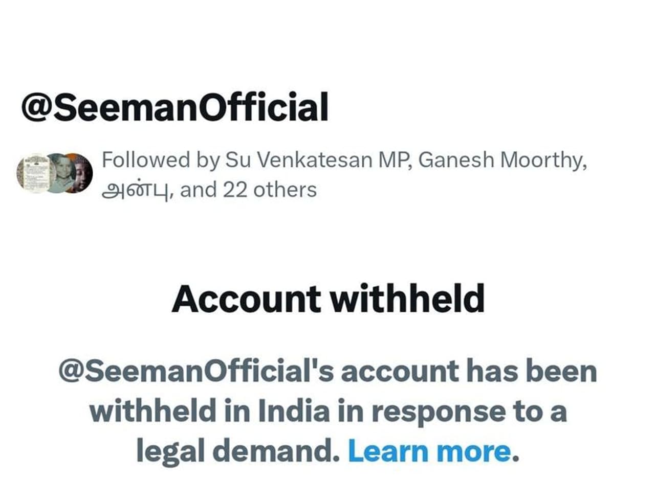 சீமான் டுவிட்டர் கணக்கு முடக்கம்