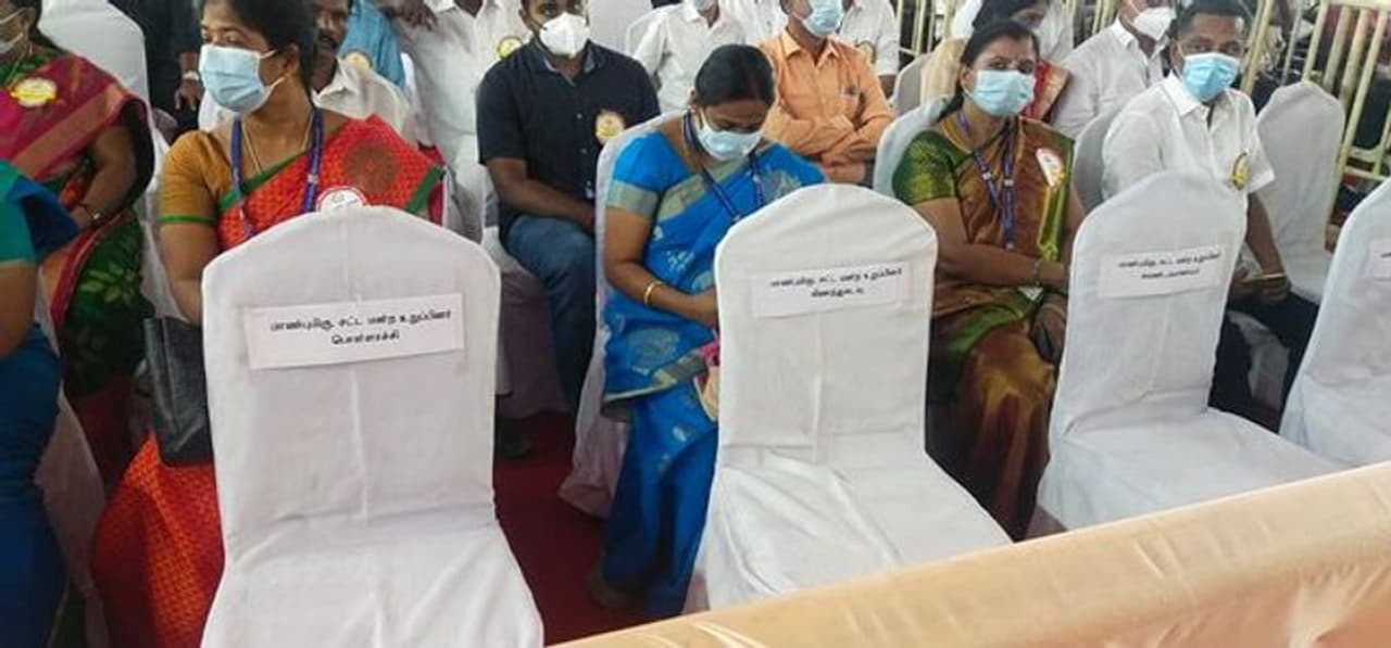 விழா மேடையின் முன் வரிசையில் கோவை மாவட்டத்தில் வெற்றி பெற்ற எஸ். பி. வேலுமணி உட்பட 10 எம்.எல்.ஏ க்களுக்கு விழாவின் முன் வரிசையில் இருக்கை ஒதுக்கீடு செய்யப்பட்டுள்ளது. அந்த இருக்கைகள் காலியாக காட்சியளித்தன. அரசு சார்பாக தெரிவிக்கும்போது அதிமுக எம்எல்ஏக்களுக்கு முறைப்படி அழைப்பிதழ் வழங்கப்படுவதாகவும் கூறப்படுகிறது.