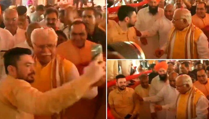 தன்னுடன் செல்ஃபி எடுக்க முயன்ற தொண்டரின் செல்போனை ஹரியானா மாநில முதல்வர் மனோகர்லால் கட்டார் தட்டிவிட்ட சம்பவம் பரபரப்பை ஏற்படுத்தியுள்ளது.