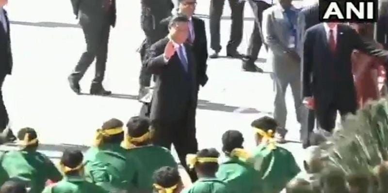 பிரதமர் மோடி மற்றும் சீனா அதிபர் ஜி ஜின்பிங் இடையேயான சந்திப்பு இன்று மாலை மாமல்லபுரத்தில் நடைபெற உள்ளது. அதற்காக இன்று பகல் 1 மணிக்கு சீன அதிபர் சென்னை விமான நிலையம் வந்திறங்கினார். அப்போது அவருக்கு சிறப்பான வரவேற்பு அளிக்க கலை குழுக்கள் தயாராக நிறுத்திவைக்கப் பட்டிருந்தன. திட்டமிட்டபடி சென்னையில் கால்வைத்த சீன அதிபரை தமிழக ஆளுநர் பன்வாரிலால் புரோகித், தமிழக முதலமைச்சர் எடப்பாடி பழனிசாமி, துணை முதலமைச்சர் பன்னீர்செல்வம் ஆகியோர் மலர் கொத்து கொடுத்து வரவேற்றனர்.