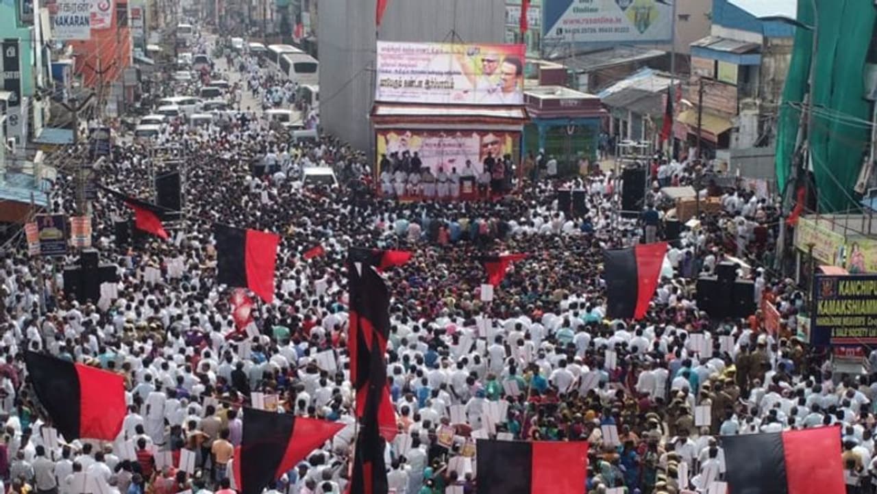 குடியுரிமை திருத்த சட்டத்தை எதிர்த்து திமுக சார்பில் இன்று தமிழகம் முழுவதும் ஆர்ப்பாட்டம் நடைபெறும் என அறிவிக்கப்பட்டது. அதன்படி, குடியுரிமை சட்டத்திற்கு எதிராக இன்று தமிழகத்தின் பல்வேறு மாவட்ட தலைநகரங்களில் திமுக போராட்டம் நடத்தியது. காஞ்சிபுரத்தில் திமுக தலைவர் மு.க.ஸ்டாலின் தலைமையில் போராட்டம் நடைபெற்றது.