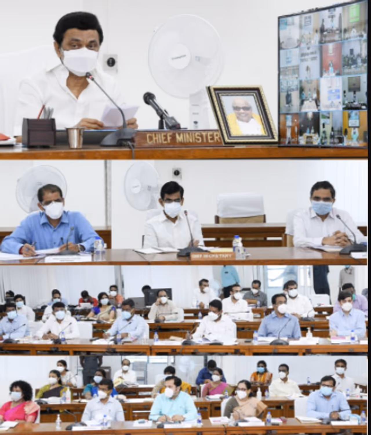 முதலமைச்சர் மு.க.ஸ்டாலின் கொரோனா பெருந்தொற்றுப் பரவல் என்ற நெருக்கடியான காலக்கட்டத்தில், நோய்த் தொற்று பரவாமல் தடுத்திட மாவட்ட ஆட்சியர்கள் மேற்கொள்ள வேண்டிய நடவடிக்கைகள் குறித்தும் ஆலோசனை நடத்தினார்.