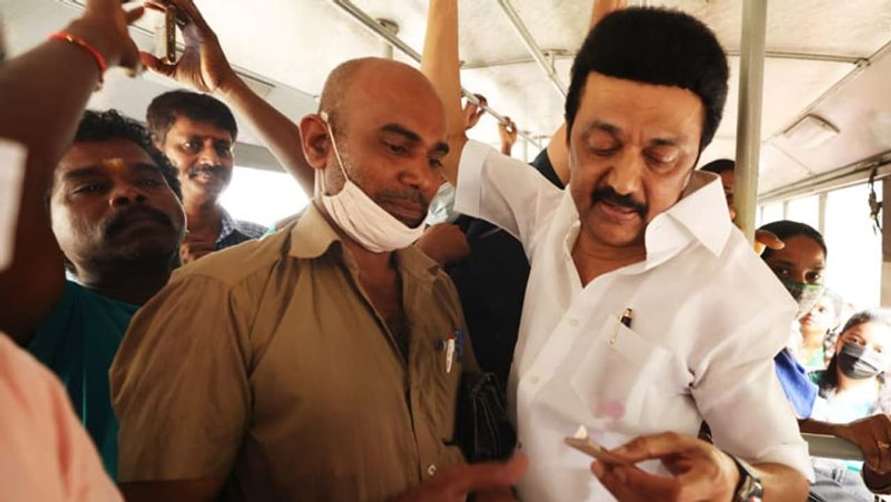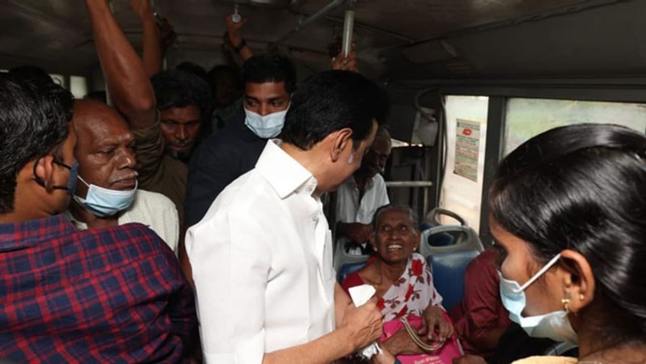 சென்னை ஆர்.கே.சாலையில் அரசுப் பேருந்தில் முதல்வர் மு.க.ஸ்டாலின் பயணம் மேற்கொண்டு பொதுமக்களிடம் குறைகளை கேட்டறிந்தார்.