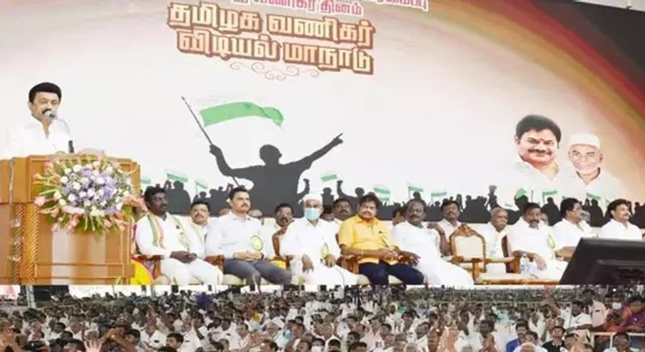 அப்போதைய அதிமுக அரசை வன்மையாகக் கண்டிக்கும் வகையில், தமிழக வணிகர்கள், போராட்டங்கள், ரயில் மறியல் போன்ற பல போராட்டங்களில் ஈடுபட்டார்கள். அப்போது அவர்கள் கைது செய்யப்பட்டு, சிறையிலும் அடைக்கப்பட்டார்கள். அப்படி கைது செய்யப்பட்ட நாள்தான் மே 5 ஆம் தேதி. அப்படி சிறை வைக்கப்பட்ட நாளை வணிகர் தினமாக இன்றைக்கு நீங்கள் கொண்டாடிக் கொண்டிருக்கிறீர்கள். இப்போது நடப்பது திமுக ஆட்சி, மன்னிக்க வேண்டும் நமது ஆட்சி. எனவே, இந்த மே 5 ஒரு மகிழ்ச்சிக்குரிய நாளாக இந்த மாநாட்டின் மூலமாக நாம் வெளிப்படுத்திக் கொண்டிருக்கிறோம். திராவிட முன்னேற்றக் கழக ஆட்சியானது வணிகர்களது நலனைப் பேணும் ஆட்சியாகத்தான் எப்போதுமே இருந்திருக்கிறது; அப்படித்தான் இருக்கும். வணிகவரித் துறை என்று ஒரு துறையே செயல்பட்டு வருகிறது. வணிகவரித் துறையானது அரசுக்கு வருகிற வருவாயில் நான்கில் மூன்று பங்கை ஈட்டித்தரும் ஒரு முக்கியத் துறையாக விளங்கிக் கொண்டிருக்கிறது. வணிகர்களின் நலன் காக்கப்பட்டால்தான் அரசுக்கு வரும் வருவாயின் நலனும் காக்கப்படும் என்ற அந்த செய்தியை நான் உளப்பூர்வமாக உணர்ந்திருக்கிறேன். ஆட்சிப் பொறுப்பேற்று அனைத்து காலக்கட்டத்திலும் வணிகர்களின் நலனைக் காப்பதில் மிகவும் அக்கறை கொண்ட அரசாகச் செயல்பட்டு வந்துள்ளோம் என்பதை நீங்கள் யாரும் மறக்க மாட்டீர்கள். கடந்த தேர்தல் அறிக்கையில், வணிகர்களின் நலனைக் காப்பதற்காக வணிகர் நல வாரியம் சீரமைக்கப்பட்டு அதனால் வழங்கப்படும் நலத்திட்ட உதவிகள் அதிகப்படுத்தப்படும் என்று அறிவிக்கப்பட்டது. அந்த அடிப்படையில், ஆட்சிப் பொறுப்பேற்ற உடனேயே புதிய நலத் திட்ட உதவிகள் வணிகர் நல வாரியத்தால் வணிகப் பெருமக்களுக்கு வழங்கப்பட்டு வருகிறது. இன்னும் சொல்ல வேண்டுமென்றால், தமிழ்நாடு வணிகர் நல வாரியத்தை 1989-ஆம் ஆண்டு உருவாக்கியவரே நம்முடைய முத்தமிழறிஞர் தலைவர் கலைஞர் அவர்கள்தான். கழக ஆட்சியில்தான் அந்த வாரியமே உருவாக்கப்பட்டது.