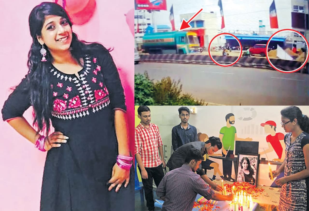 இதனால் அதிர்ச்சி அடைந்த ராஜேஸ்வரி, தன் மேல் கொடிக்கம்பம் விழாமல் இருப்பதற்காக பிரேக் போட்டுள்ளார். திடீரென வாகனத்தை நிறுத்தியதால் நிலை தடுமாறி ராஜேஸ்வரி கீழே விழுந்தார். அப்போது பின்னால் வேகமாக வந்த லாரி ஒன்று ராஜேஸ்வரியின் இரண்டு கால்களிலும் ஏறியுள்ளது. இதில் பலத்த காயமடைந்த அவரை அங்கிருந்தவர்கள் மீட்டு மருத்துவமனையில் சேர்ந்தனர்.