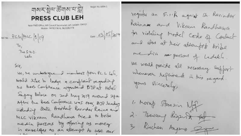 இது தொடர்பாக லே பத்திரிகையாளர் சங்கத்தின் முக்கிய உறுப்பினர்கள் கையெழுத்திட்ட இரண்டு பக்கக் கடிதம் வலைதளங்களில் வைரலாகிவருகிறது. அக்கடிதத்தில், மாநில பா.ஜ.க. தலைவர் ரெய்னா, எம்.எல்.சி. விக்ரம் ரந்தாவா ஆகிய இருவரும் பத்திரிகையாளர்கள் தங்கள் செய்திகளில் பா.ஜ.க.வுக்கு ஆதரவாக எழுதவேண்டும் என்பதற்காக அவர்களுக்கு கவரில் போட்டு வெயிட்டாக கவனித்ததாகவும் அதற்காக பா.ஜ.க.வினர் மீது தக்க நடவடிக்கை எடுக்கவேண்டும் என்றும் போலீஸில் புகார் அளித்துள்ளனர்.