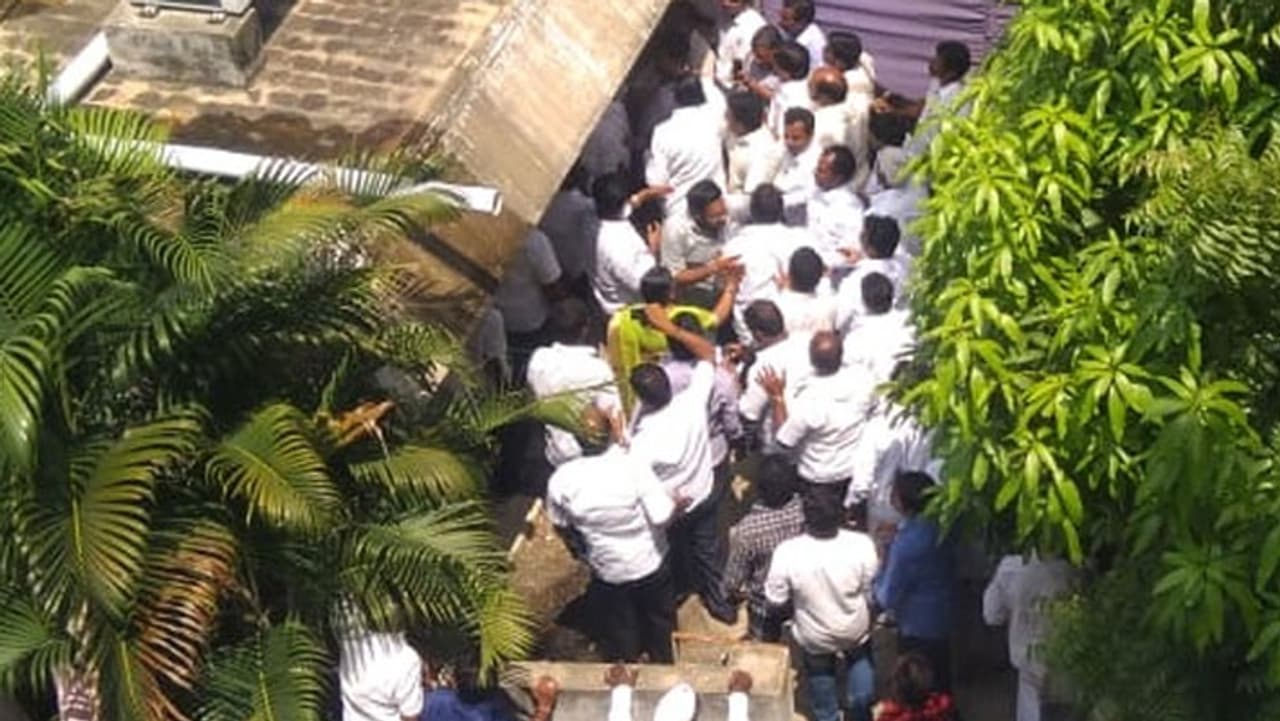 சிறிது நேரத்தில் ஆதரவாளர்களுக்கும் இடையே திடீர் மோதல் ஏற்பட்டது. இந்த மோதலில் 2 பேருக்கு காயம் ஏற்பட்டுள்ளது. புதிய மேலிடப் பொறுப்பாளர்கள் முன்னிலையில் நடைபெற்ற மோதலால் காங்கிரஸ் அலுவலகத்தில் பரபரப்பு ஏற்பட்டுள்ளது. நீண்ட நாட்களாக அடங்கி கிடந்த காங்கிரஸ் கோஷ்டி பூசல் மீண்டும் தலைதூக்கியுள்ளது.