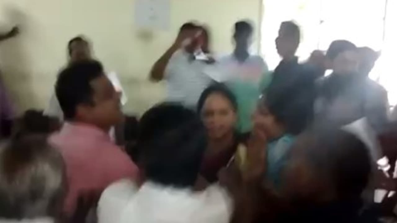 இதை, இன்று சத்திய மூர்த்தி பவனில் இருந்த ஹசீனா சையத் கிண்டலாக கூறி இருக்கிறார். அதை கேட்டு ஆத்திரம் அடைந்த கௌரி கோபால், உடனே அருகில் இருந்த, ஹசீனா சயத்தின் தலைமுடியை பிடித்து இழுத்து நான்கு மிதி மிதித்து இருக்கிறார்.