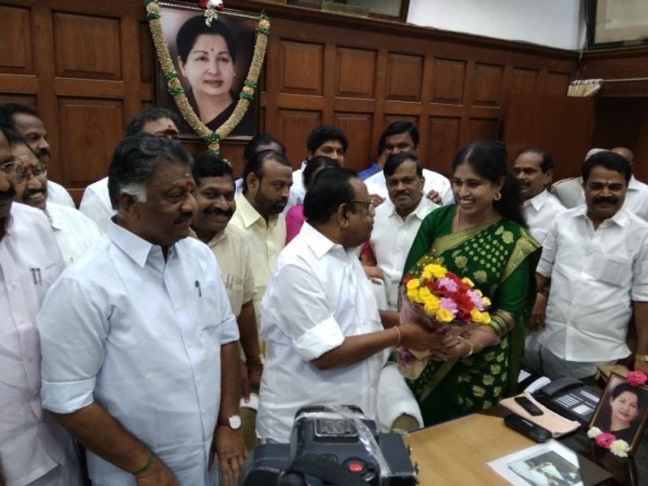 இவ்வாறு விஜயதாரணி பேசிக்கொண்டு இருக்கும்போதே பேரவையில் கொடுக்கப்பட்டிருந்த நேரம் முடிந்ததை அடுத்து அவருக்கான மைக் ஆப் செய்யப்பட்டது. இந்த நிலையில் அவருக்கு பேச வாய்ப்பு அளிக்குமாறு காங்கிரஸ் கட்சியினர் கேட்டுக்கொண்டனர். அப்போது அதிமுக சட்டமன்ற உறுப்பினர்களும் விஜயதாரணிக்கு பேச வாய்ப்பு வழங்குமாறு சட்டப்பேரவை துணை தலைவரிடம் கோரிக்கை விடுத்தனர். இதனை ஏற்ற துணை சபாநாயகரும் விஜயதாரணி பேசுவதற்கு வாய்ப்பு வழங்கினார். இந்தநிலையில் அதிமுக அரசின் திட்டமான தாலிக்கு தங்கம் திட்டத்தை ஆதரித்து பேசிய விஜயதாரணிக்கு, பாப்பாரப்பட்டி அதிமுக சட்டமன்ற உறுப்பினர் கோவிந்தசாமி தன் அருகில் இருந்த அனைத்து ரோஜா பூக்களையும் பெற்று காங்கிரஸ் சட்டமன்ற உறுப்பினர் விஜயதாரணியிடம் வழங்கினார். இந்த சம்பவம் சட்டப்பேரவையில் சிரிப்பலையை ஏற்படுத்தியது.