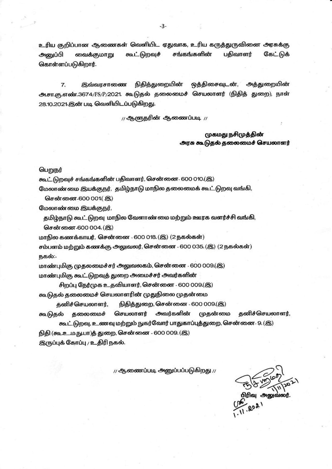 * இவ்வரசாணையின் நிதித்துறையின் ஒத்திசைவுடன், அத்துறையின் ஆசா.கு.எண்.3674/PS/P/2021 கூடுதல் தலைமைச் செயலாளர் (நிதித் துறை) நாள் 28:10.2021-இன் படி வெளியிடப்படுகிறது.