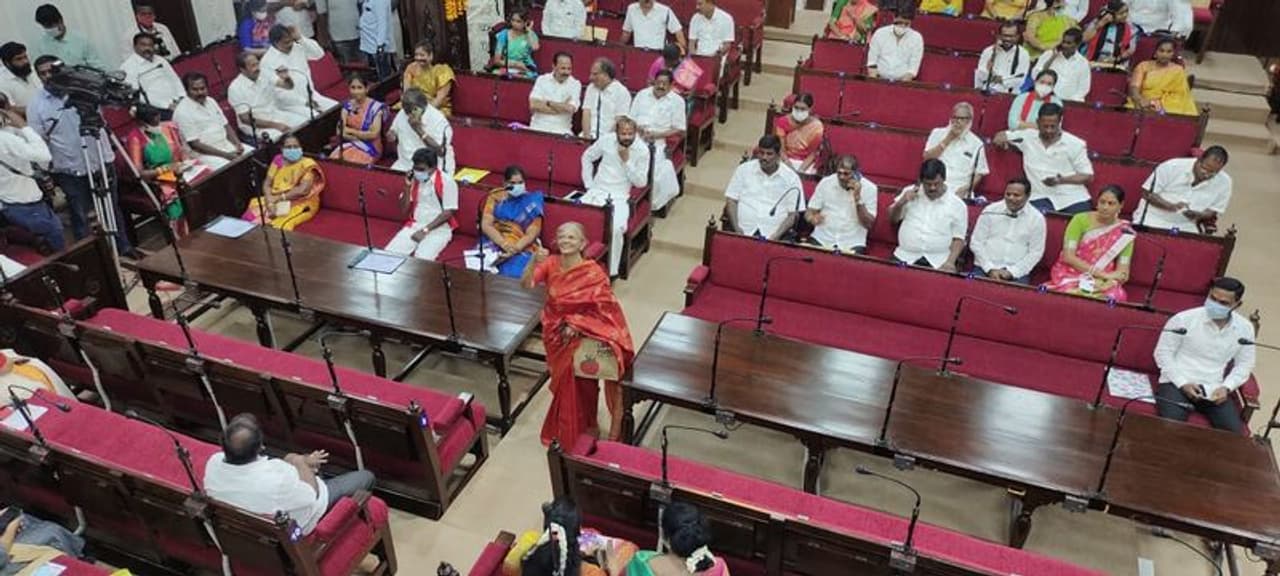 மொத்தமாக உள்ள 21 மாநகராட்சிகளையும்,132 நகராட்சிகளையும், 455 பேரூராட்சிகளிலும் திமுக கூட்டணி கைப்பற்றியுள்ளது. இந்த நிலையில். தமிழகம் முழுவதும் வெற்றிபெற்ற மாநகராட்சி, நகராட்சி, பேரூராட்சி உறுப்பினர்கள் பதவி ஏற்பு விழாவானது அந்த அந்த அலுவலகங்களில் இன்று நடைபெற்றது. சென்னையை பொறுத்தவரை சென்னை மாநகராட்சி அலுவகம் உள்ள ரிப்பன் கட்டிடத்தில் பதவியேற்பு விழா நடைபெற்றது. சென்னையில் உள்ள 200 வார்டுகளில் 153 வார்டுகளில் திமுக வெற்றி பெற்று தனிப்பெரும்பான்மையுடன் சென்னை மாநகராட்சி கைப்பற்றியுள்ளது. பதவி ஏற்பு விழாவில் பல்வேறு வித்தியாசமான சம்பவங்களில் ஈடுபட்டு கவுன்சிலர்கள் பதவியேற்று கொண்டனர். சென்னை மாநகராட்சி தேர்தலில் வெற்றி பெற்ற காங்கிரஸ் கவுன்சிலர் அமிர்தா வர்ஷினி பெண்களுக்கான இலவச பேருந்து திட்டத்தை பொதுமக்களிடம் சென்றடையிம் வகையில் அரசு பேருந்தில் இலவசமாக பயணம் செய்து மாநகராட்சி அலுவலகம் வந்தார். இதே போல ராமநாதபுரம் நகராட்சியில் வெற்றி பெற்ற பெண் கவுன்சிலர்கள் 12 பேரும் ஒரே கலர் சேலையில் வந்து கலக்கினர். நெல்லை மாநகராட்சியில் வெற்றி பெற்ற வேட்பாளர்கள் 30 கார்கள் புடைசூழ 5 டெம்போ வாகனங்களில் அனைத்து திமுக கவுன்சிலர்களும் பதவியேற்க ஒன்றாக வந்தனர். பெரும்பாலான இடங்கில் தங்களது குழந்தைகளையும் கணவர்களோடும் வந்து பெண் கவுன்சிலர்கள் பதவியேற்றுகொண்டனர்.