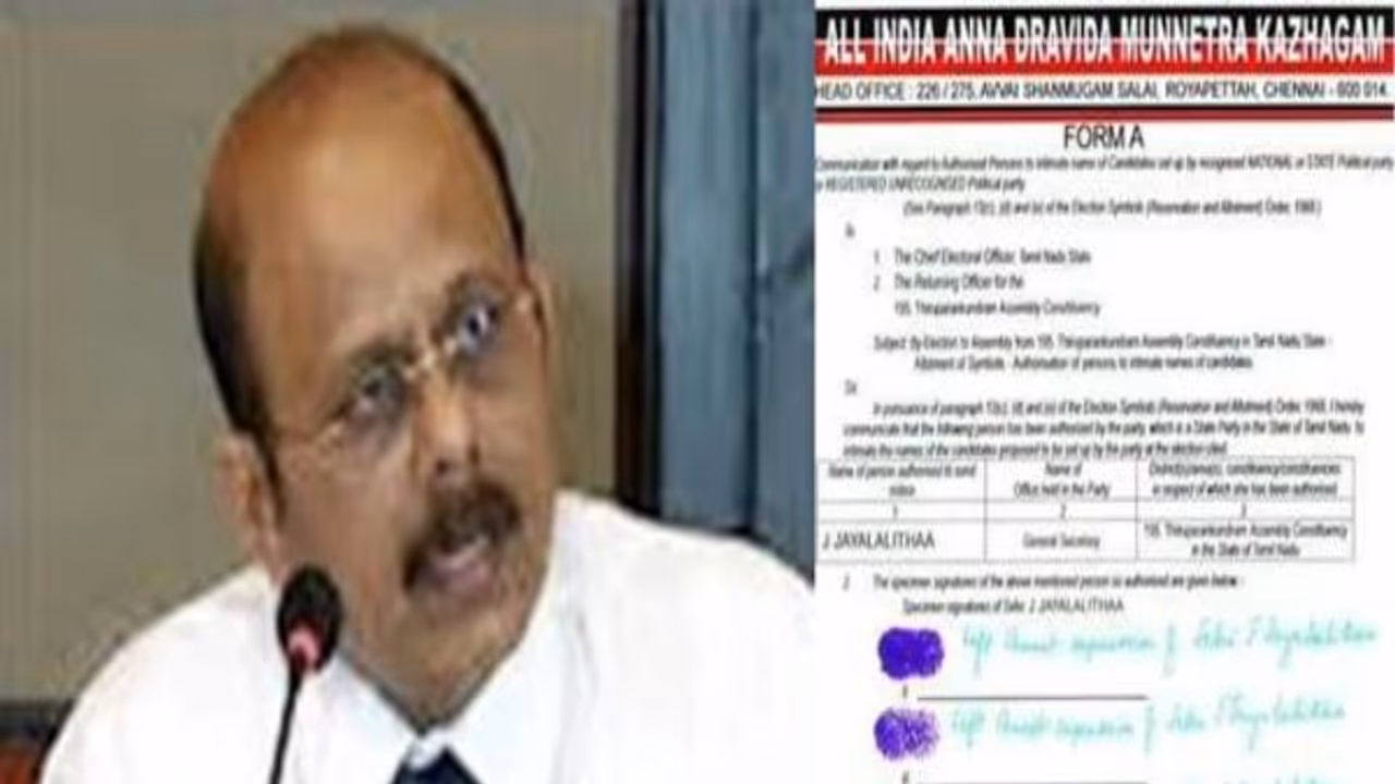 திருப்பரங்குன்றம் உள்ளிட்ட 3 தொகுதிகளுக்கான இடைத்தேர்தலின்போது ஜெயலலிதா மருத்துவமனையில் சிகிச்சை பெற்று வந்தார். அதனால், அதிமுக., வேட்பாளருக்கான சின்னம் ஒதுக்கக்கோரும் படிவத்தில், கையெழுத்து பெறப்படாத நிலையில், அரசு மருத்துவர்கள் முன்னிலையில் பொதுச் செயலாளர் என்ற வகையில், ஜெயலலிதாவின் கைரேகை பெறப்பட்டதாக அதிமுக தரப்பில் அப்போது தெரிவிக்கப்பட்டது.