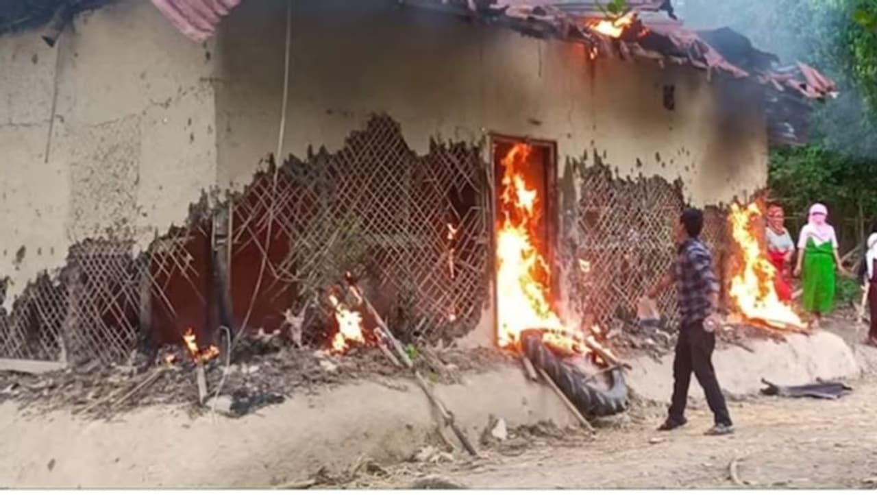 மணிப்பூர் வீடியோ: தீக்கிரையாக்கப்பட்ட முக்கிய குற்றவாளியின் வீடு!