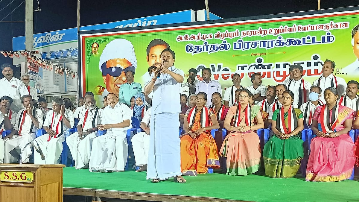 பிரச்சார மேடையில் திமுகவை முகம் சுளிக்க வைக்கும் வகையில் முன்னாள் அமைச்சர் சி.வி.சண்முகம் பேசியுள்ள வீடியோ வைரலாகி வருகிறது