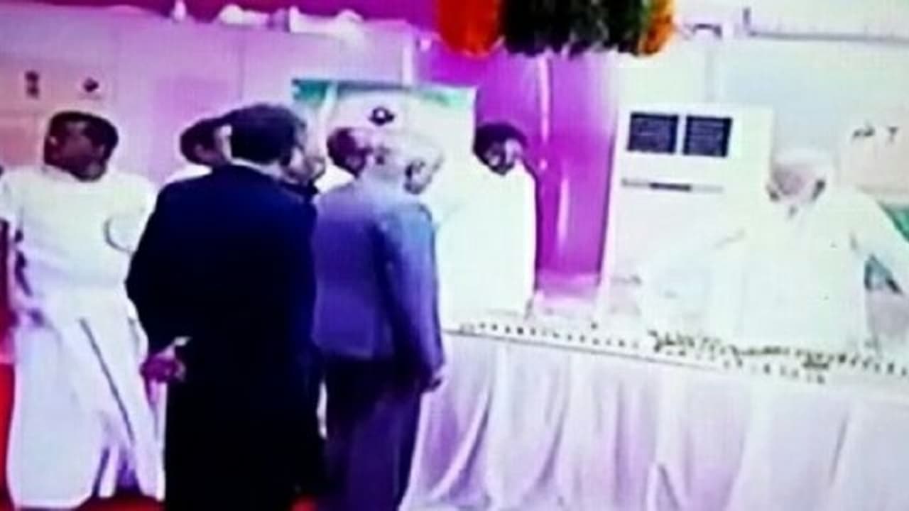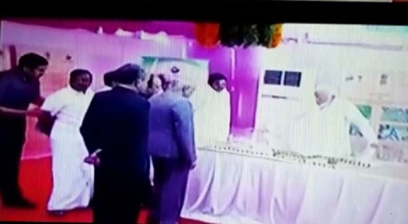 இந்த நிகழ்ச்சிக்கு முன்னதாக பிரதமர் மோடிக்கு அதிகாரிகள் இன்று தொடங்கி வைக்கப்பட்ட திட்டங்கள் தொடர்பாக விளக்கம் அளித்துக் கொண்டிருந்தனர், அப்போது , ஆளுநர், முதலமைச்சர், துணை முதலமைச்சர் உள்ளிட்டோர் அங்கிருந்தனர். அவர்களுடன் முன்னாள் அமைச்சரும், தமிழக அரசின் டெல்லி பிரதிநிதியுமான தளவாய் சுந்தரமும் இருந்தார்.